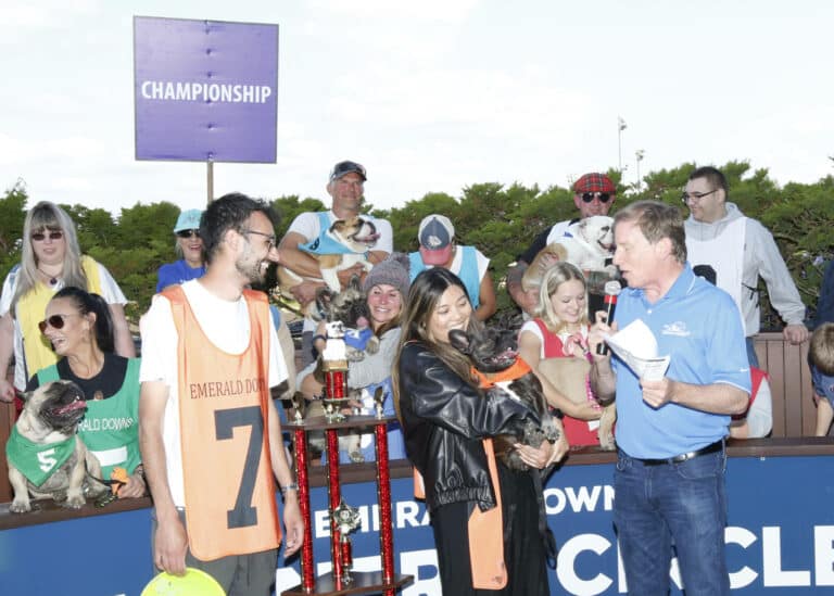 There were 9 heats of preliminaries on Bulldog Championship day and in the end Melo who won the 7th heat would go on to win the Championship. Jacqueline Nguyen of Seattle is the proud owner of the 2023 Champion. Running 2nd was Khloe owned by Khaley Audette of Maple Valley and rounding out the top three was Franklin from Lake Tapps completing the trifecta for owner Melissa Koester.