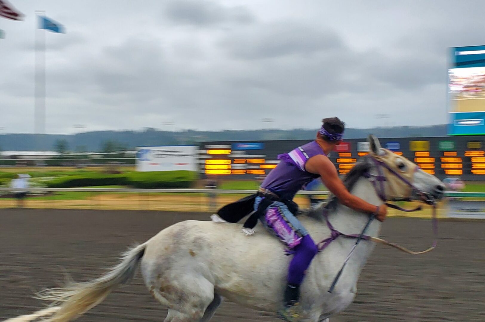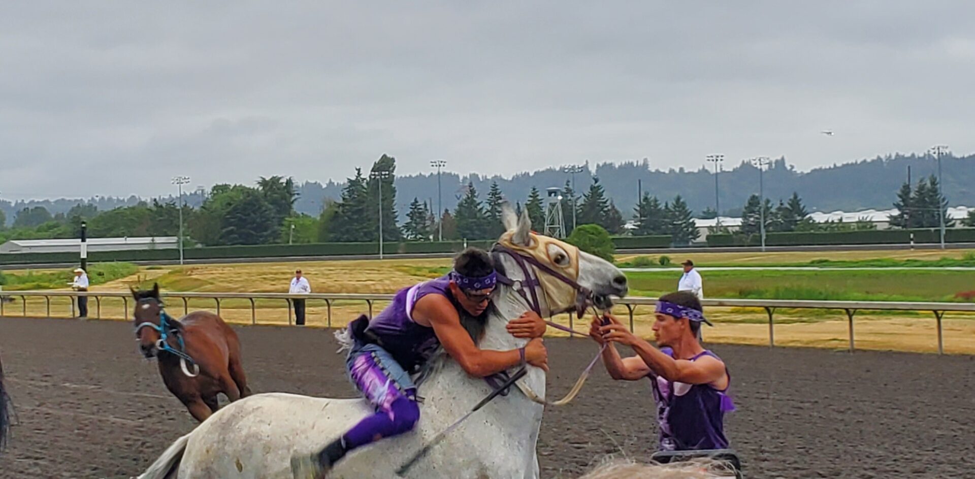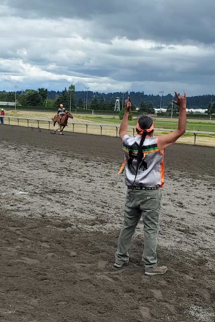 We also talked with the MC and lead organizer of the Gold Cup at Emerald Downs, Gayle SkunkCap. SkunkCap says the beauty of this event highlights the not only the horsemanship of the competitors but the amount of work and training that goes into competing in this very dangerous event. The athleticism is incredible and the pride each team member has representing their tribe is clear when you them compete. Here’s our full interview with SkunkCap: