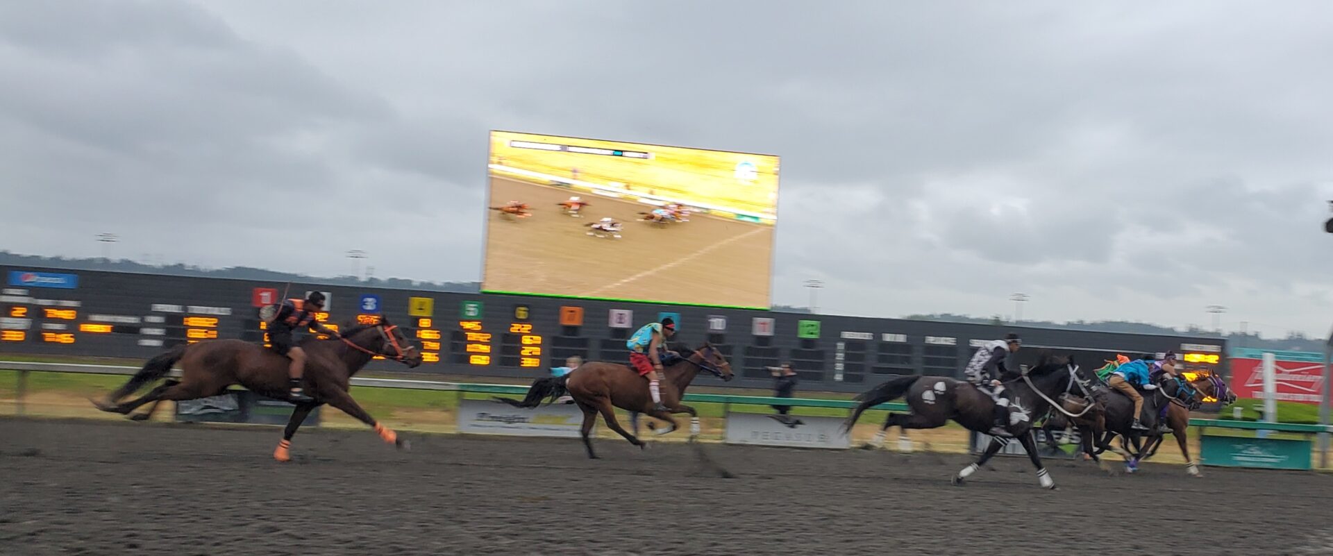 At pit stop #3, Cody Carlson and Two Medicine did not skip a beat and were in command, BirdinGround made up more of the gap to pass Abrahamson who struggled a little bit in that 3rd exchange that cost them 2nd place. BirdinGround made up some of the difference but Two Medicine had plenty of lead to work with and prevailed by about 5 lengths over BirdinGround while Abrahamson was a clear 3rd while Carlson ran an even 4th and Counting Coup took 5th.