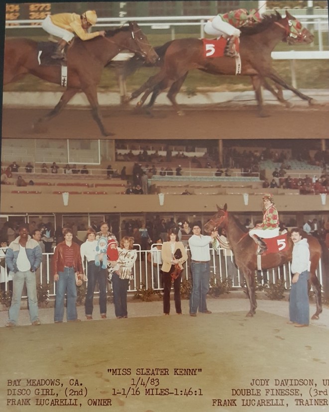 The couple would finally marry in 1981 and lived in an apartment near Factoria Square. Early on like many trainers getting their start it is not uncommon for an owner to become impatient and decide they want to go with another trainer. This of course happened to Frank but one of his firings led to a down payment for their first home and 5-acre farm in Enumclaw. When this particular owner fired him he told Frank he could have this one particular horse he felt wasn’t going to amount to much. Frank agreed but took the filly anyway. But the horse named Miss Sleater Kinney would surprise Frank and Pam and would win twice and placed several times in 1982 and the Lucarelli’s earned enough off of her alone to make a down payment on their first home.