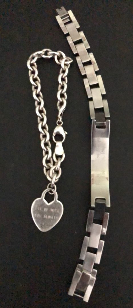 The two of them then took their time over the Summer in picking out the bracelets and figuring out what to have engraved on them. Carrie brought Tony a catalogue from one of the jewelry stores in Enumclaw. She said he would look through it and finally decided which bracelets he would get for each of them. Next they worked on the engraving and on Frank and Pam’s he had written, “I will be with you always, Love Tony” and on Michael’s wrote “Brothers Forever”.