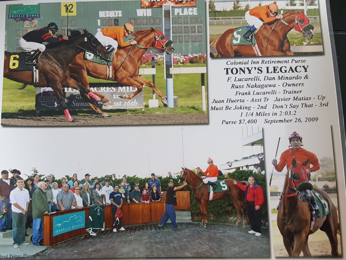 Up next were Winnergreene and Wakarusa both finished 3rd then it happened on a Thursday, September 20 a horse named Tamborileo would win the all important 10th and Exacta race at Longacres for Lucarelli’s first career training win. Little did he know 39 years later he would make the walk to the Winner’s Circle another 1,682 times.