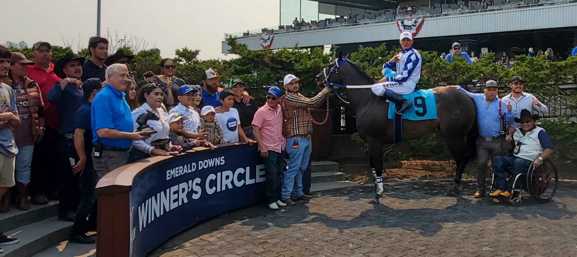 Benn was pleased with how his mare broke and being on the outside being able to see the early speed to inside had and him feeling confident and about 100 yards into the race felt he had this measured perfectly. Speaking of perfect that is what Apolinaria Prize is at Emerald downs now a perfect 4 for 4, she certainly knows what the Cutwater Winner’s Circle looks like.