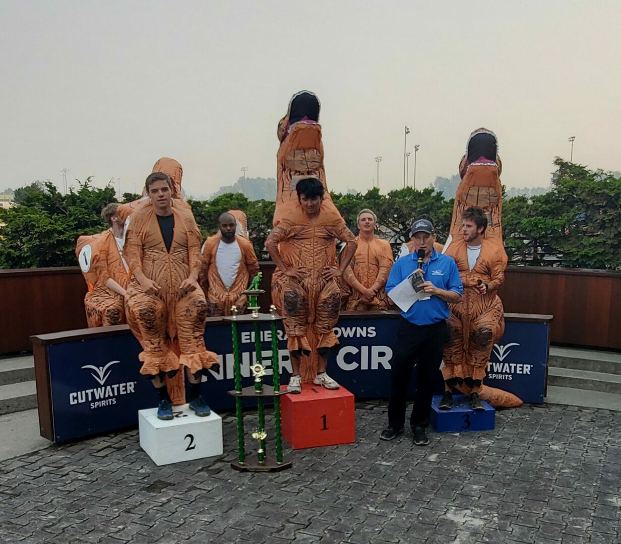 Both Kim and Winegar work for Tri-Guard Pest Control who had 40 employees in the races. Tri-Guard started the T-Rex race at Emerald Downs as a team building outing in 2017. The races were dedicated to Terry Richards, Tri-Guard’s CEO who passed away tragically in a small plane crash earlier this year.