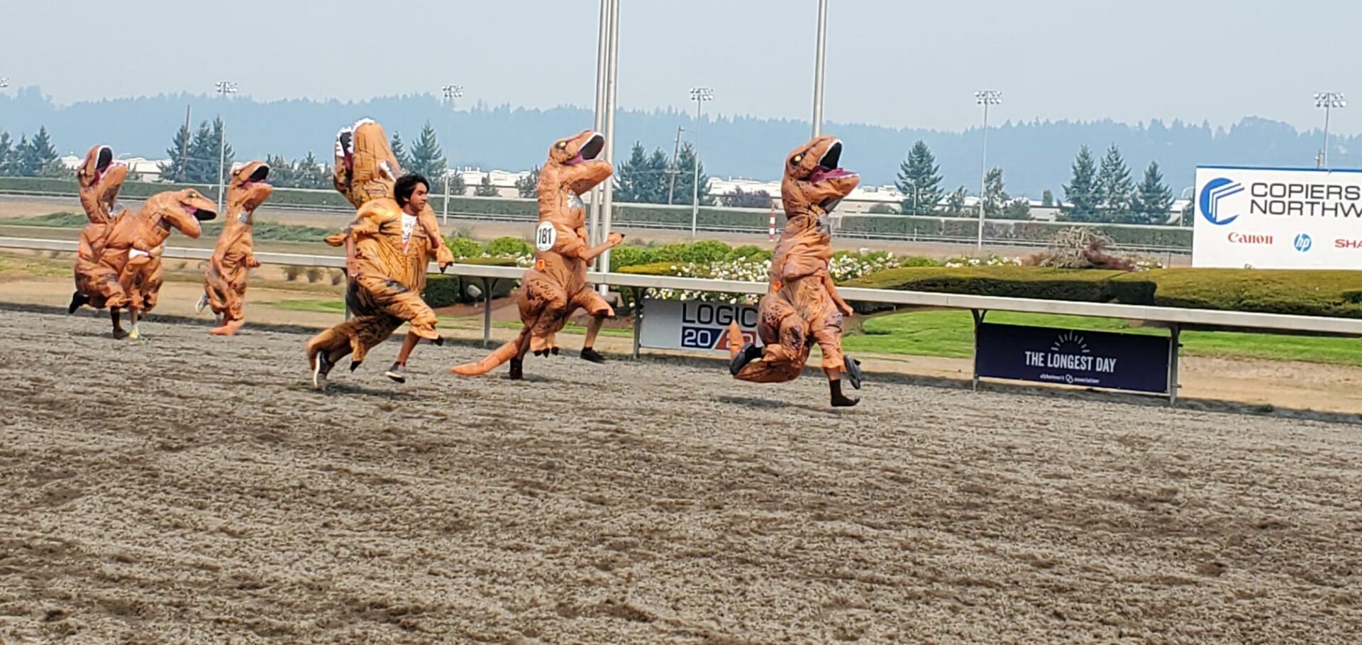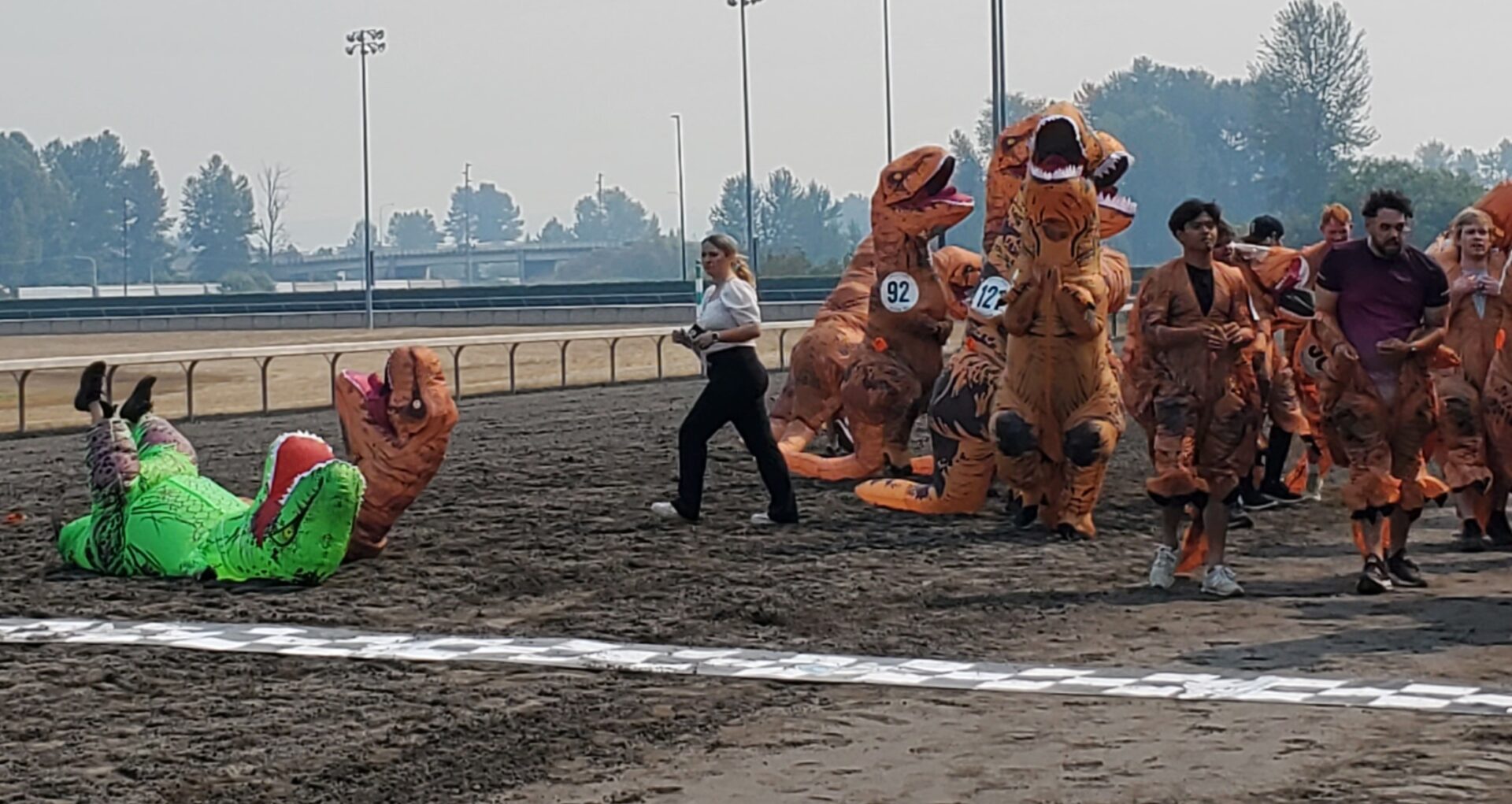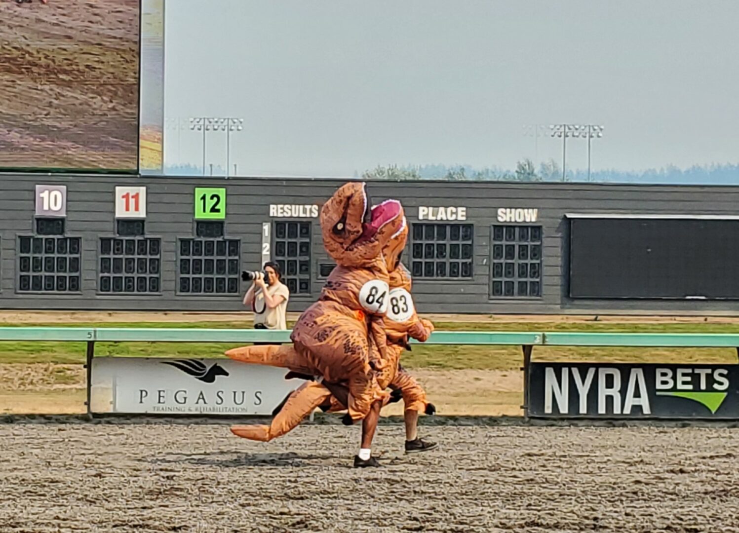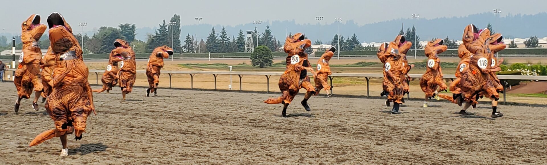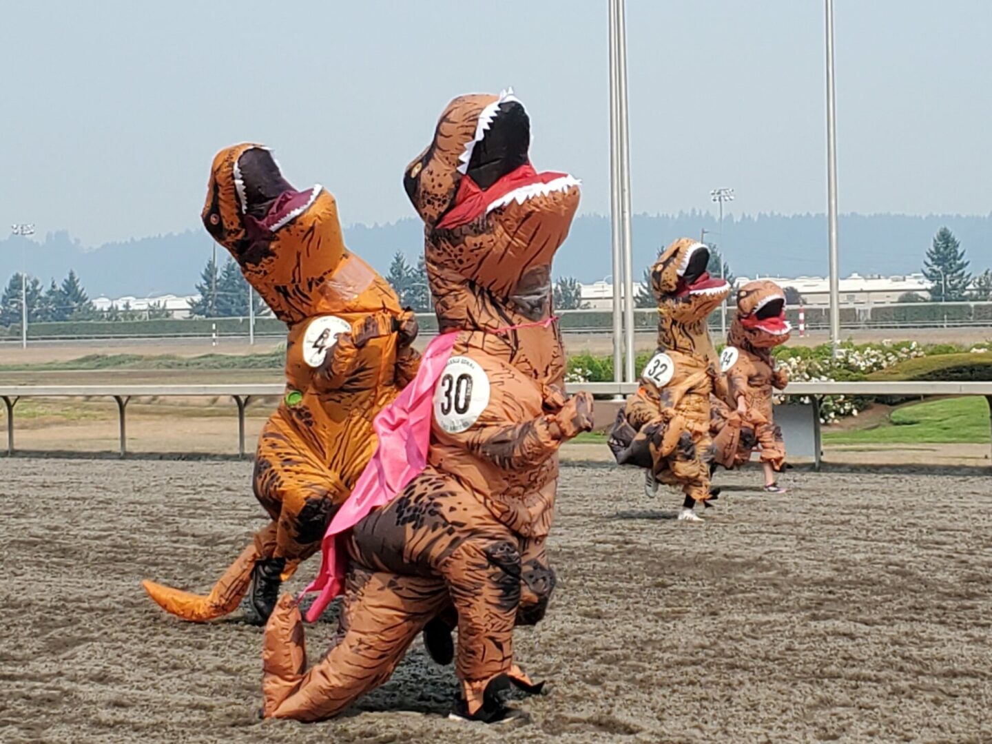 The T-Rex “World Championships” were run this weekend at Emerald Downs, Track President Phil Ziegler declared it was the 1st World Championships held since the last ones 65-million years ago! There was a kids race and the 8 heats of adult qualifying runs leading up to the “World Championship”!