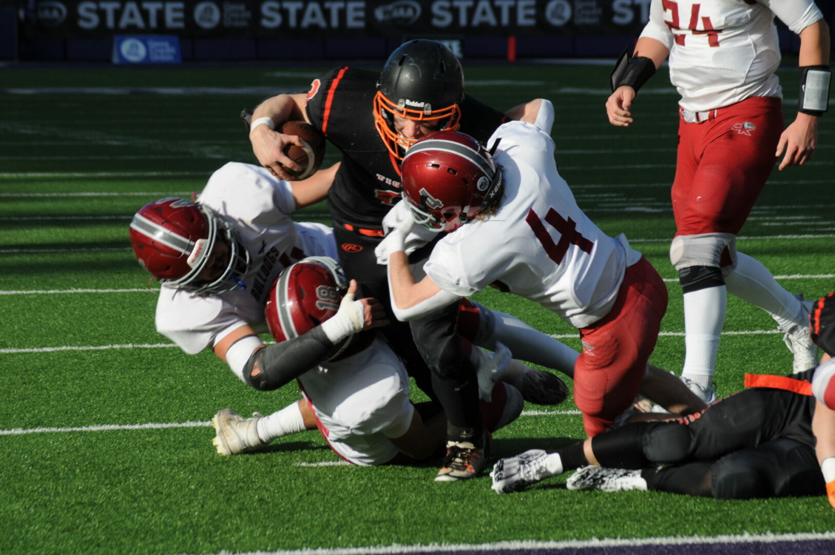 Okanogan would get a break after holding Napavine to a 3 and out on the punt attempt it went awry with Demarest scrambling and getting sacked at their own 33. The Bulldogs drove it down to the 1 yard line but Napavine’s Cayle Kelly stepped into the gap and stuffed the play. Napavine would run out the clock and Okanogan went into the break with a 14-6 lead.