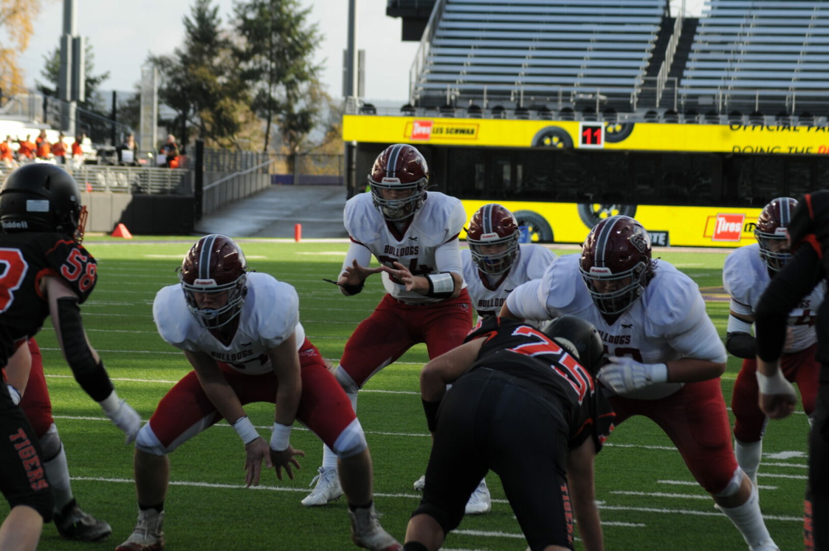 After holding Napavine to a 3 and out the Tigers pinned the Bulldogs back to their own 11 with a big 51 yard punt by Ashton Demarest. Okanogan on 3rd and 5 got within a couple of inches on a Kuchenbuch keeper bringing up 4th and very short on their own 20. Okanogan decided to punt but only picked up 23 yards and Napavine’s 2nd possession was in great field position.