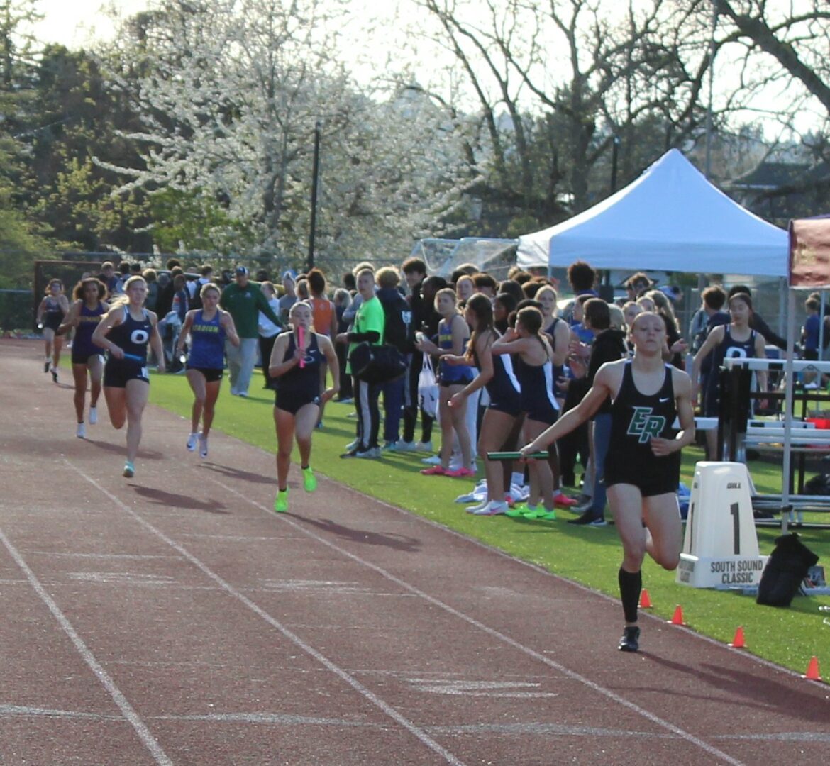 (Puyallup, WA) Emerald Ridge and Rogers (Puyallup) track teams hosted their 4th annual South Sound Classic sponsored by the Washington State Fair under sunny skies and warm early spring temperatures at Sparks Stadium in Puyallup. Emerald Ridge Head Coach Robert Frey has been the key mover of creating this event and making sure it goes off as smoothly as possible as was pumped that the weather cooperated.