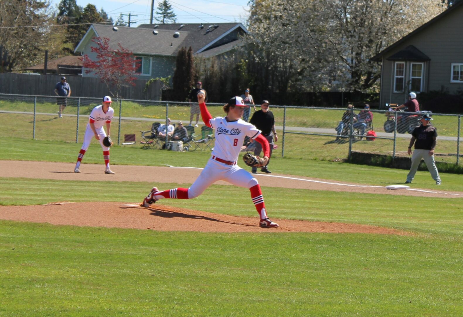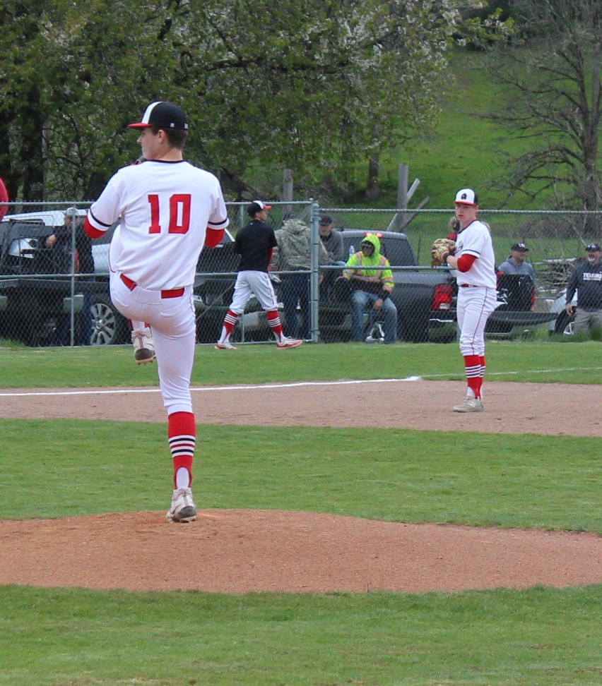 Tenino had to use 5 pitchers in the 2nd game and all struggled while Montesano went with 2 pitchers Caden Grubb went 3.1 innings and Skylar Bove finished and although they gave up plenty of runs the offense was more than sufficient to pick up the pair of really important wins.