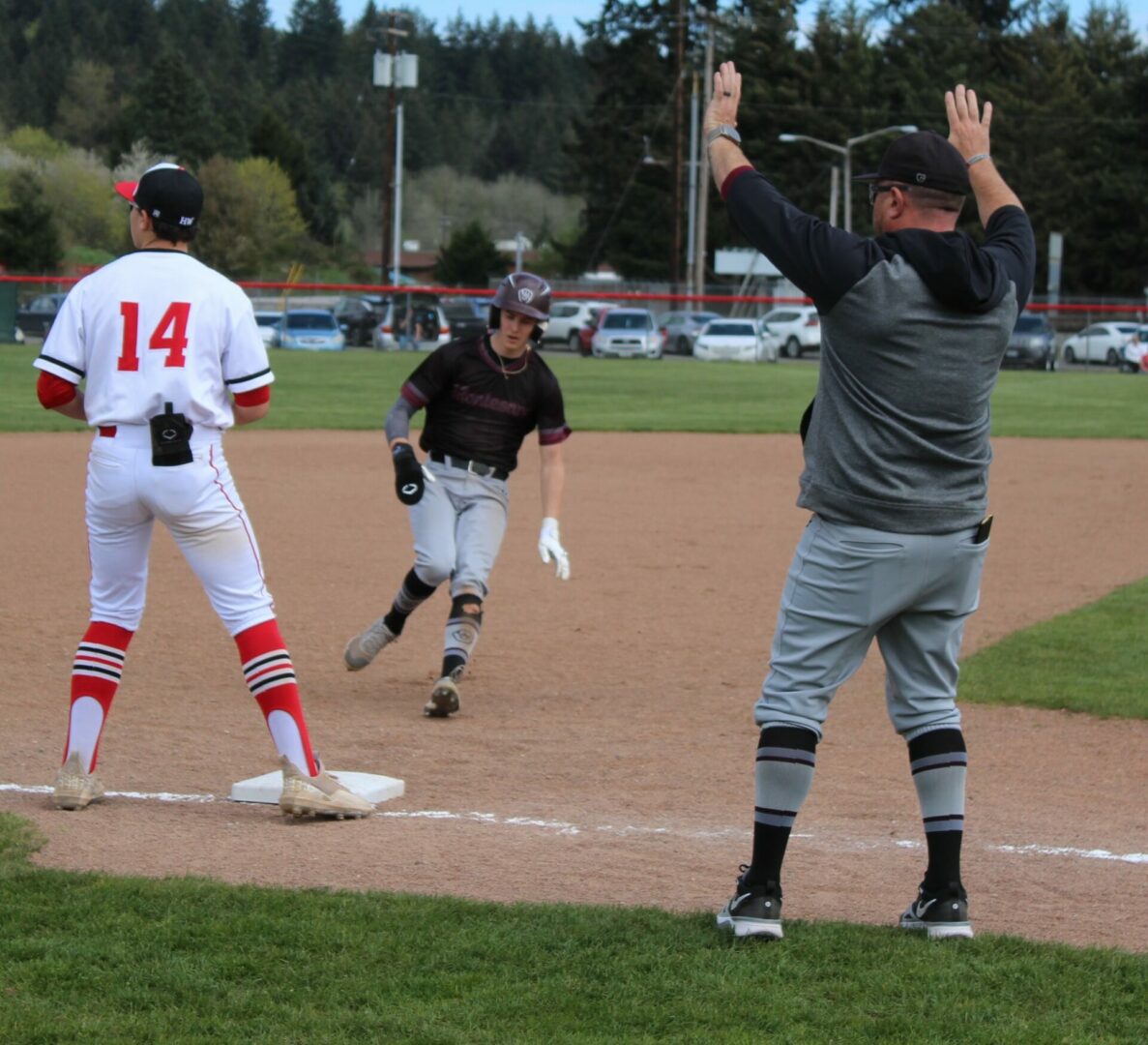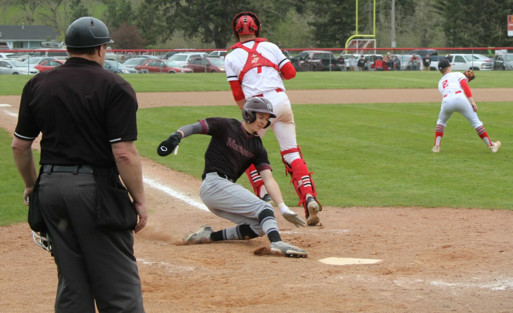 The game would go back and forth with Montesano scoring 2 in the 3rd when after 1 run in and 2 outs Tenino pitcher Jack Burkhardt was having trouble getting to the Bulldogs and walked 2, hit a batter and then walked in the 2nd run. Beavers Head Coach Ryan Schlesser was not happy with the strike zone and let it be known. To be fair, Montesano Head Coach Mike Osgood would also question ho0w tight the strike zone was as a total of 16 walks were awarded between the 2 teams.