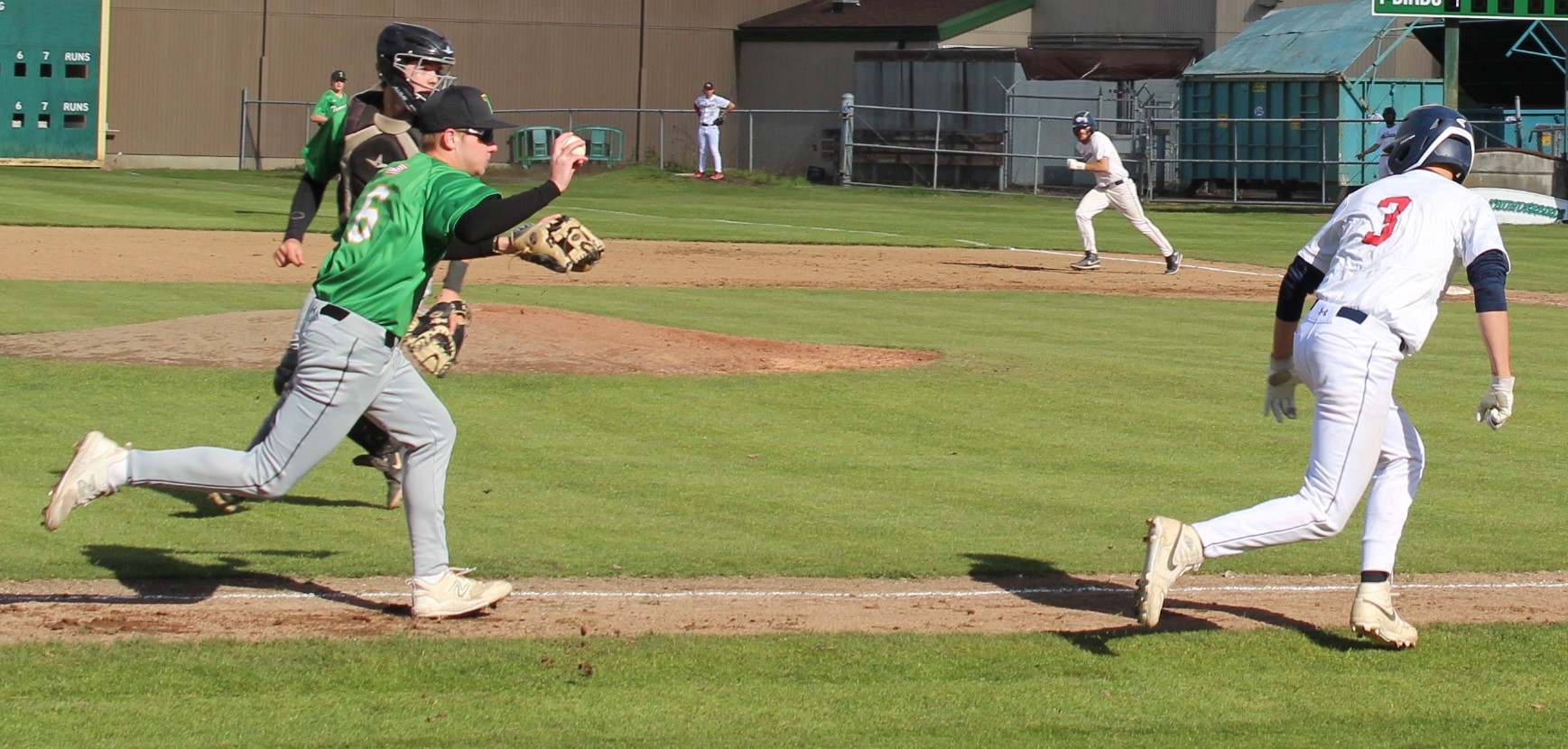 Tumwater added a run in the top of 2 when Peyton Davis led off with a single and scored on a sharply hit double by Marson into right-center field. Marson would have easily had a triple but he stumbled rounding 2nd and hit the deck. Marson tried to scramble to get to the base but was tagged out for the 3rd out and ended the inning but not before Davis scored to make it 3-1.