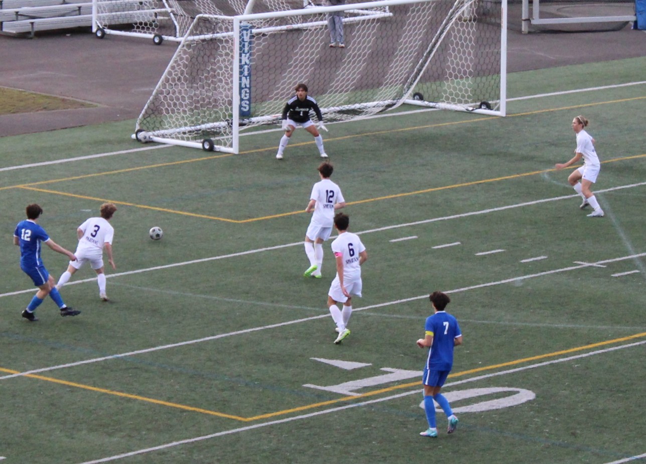 The Vikings of Puyallup wasted no time, Curran Caufield scored quickly, and Puyallup had their stranglehold of the SPSL crown. On a night where Puyallup commemorated their seniors, senior Liam Stoner set the Puyallup tone with a penalty kick goal in the twenty sixth minute to give the home side a 2-0 lead and the Vikings went into halftime maintaining the 2-0 lead.