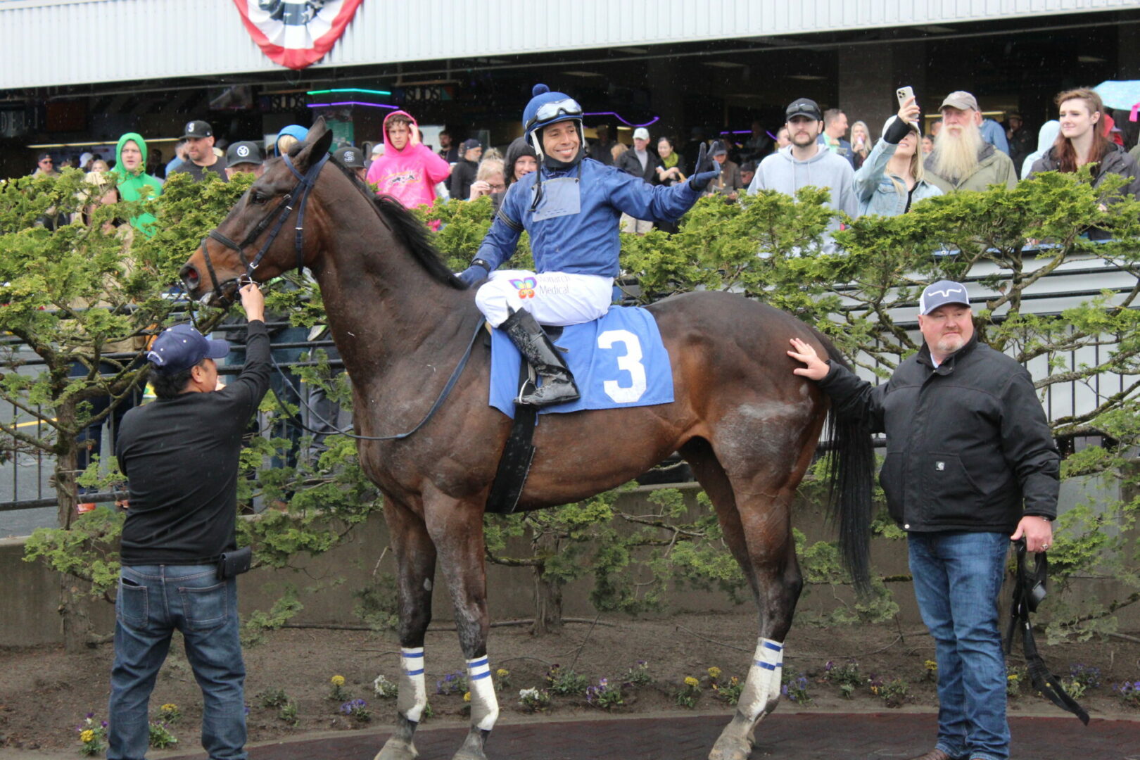 Nation’s Belle covered the 5 1/2 in 1:03.45 and is trained by Kay Cooper and owned by Blue Ribbon Racing #21. The 4-year-old is by Nationhood and out of Belltown Beauty by Speightstown and bred in Washington by Mr and Mrs Frederick Pabst.
