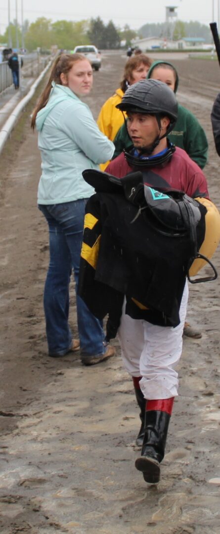 We’re calling him the carpenter because this last off-season with all the turmoil at Turf Paradise he decided to stay home and worked as a carpenter for Emerald Downs. That with is precision in the saddle especially with crowd favorite Slew’s Tiz Whiz, Zunino is “The Carpenter”!