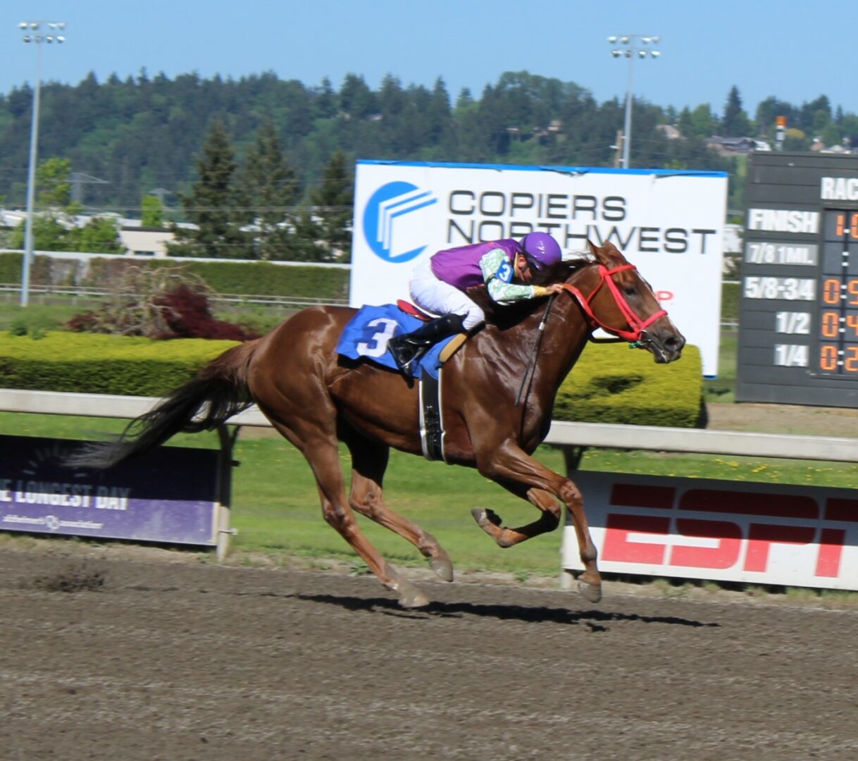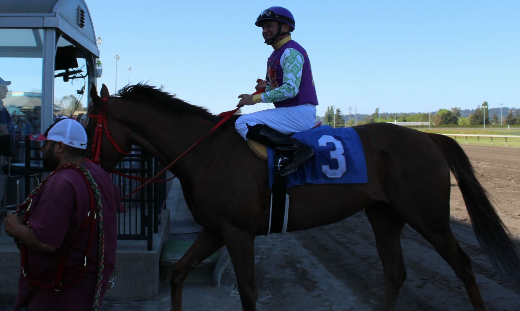 (Auburn, WA) Days 2 and 3 came under bright sunny skies and warm temperatures as the 2024 season is officially underway. The jockey’s and trainers that were finishing the season at Turf Paradise last weekend have made their way north and several got their 1st taste of the Auburn oval track.