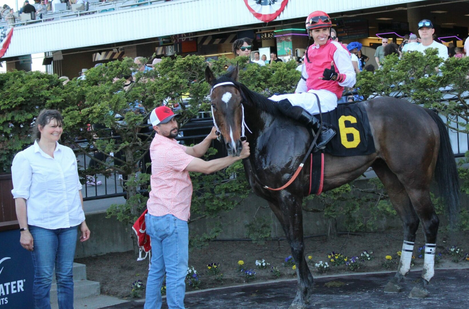 A few notable winners from the weekend were Bob Bean, the colorful old school trainer booted home Bea Mischief with Brayan Pena up. Bean’s groom which we didn’t get his name was pretty fired up for the win and so fun to see the joy in the grooms when they get their horse across the line.