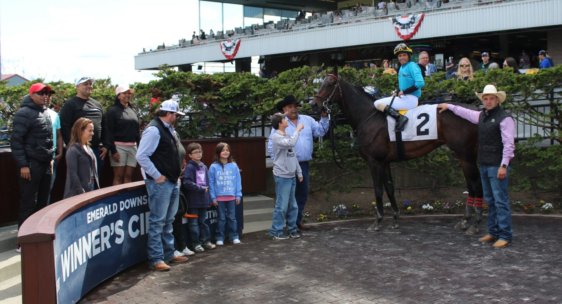 It’s a great tradition of getting to the Winners Circle and getting your picture taken. The owners and trainer then order their pictures and can display their big wins. Longtime track photographers Reed and Erin Palmer have taken all of the most historic photos from day 1 at Emerald Downs.