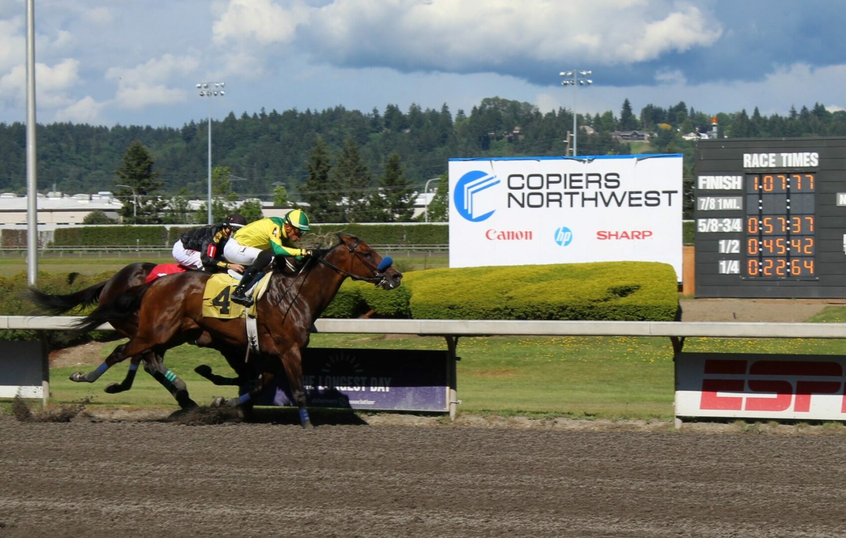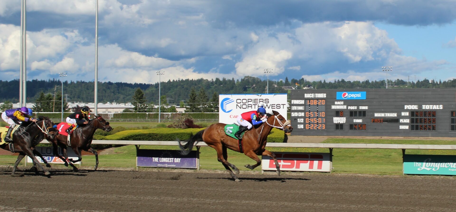 Evans spread the word to many in Azrizona that Emerald was the place to go that we saw many new faces in the jockey’s room making it one of the most competitive rooms in Emerald history. Turf Paradise leading rider Karlo Lopez came up and is just starting to get to know the uniqueness of the Auburn oval.