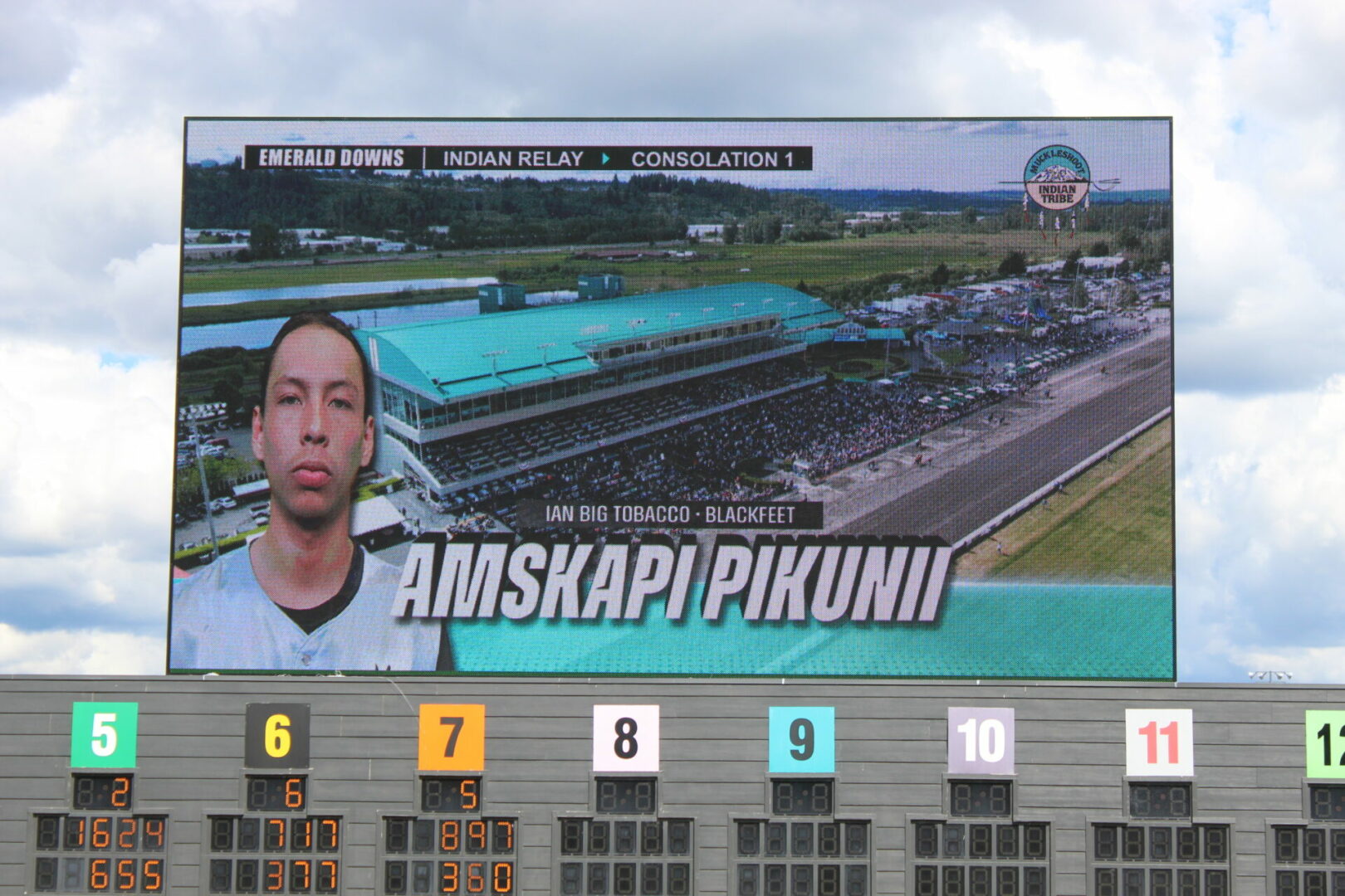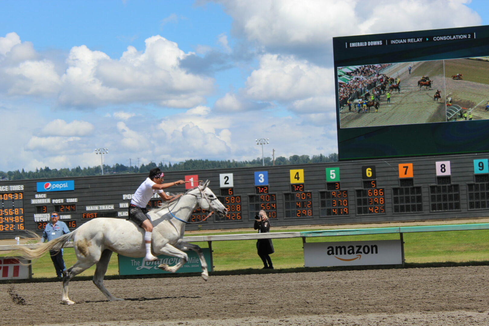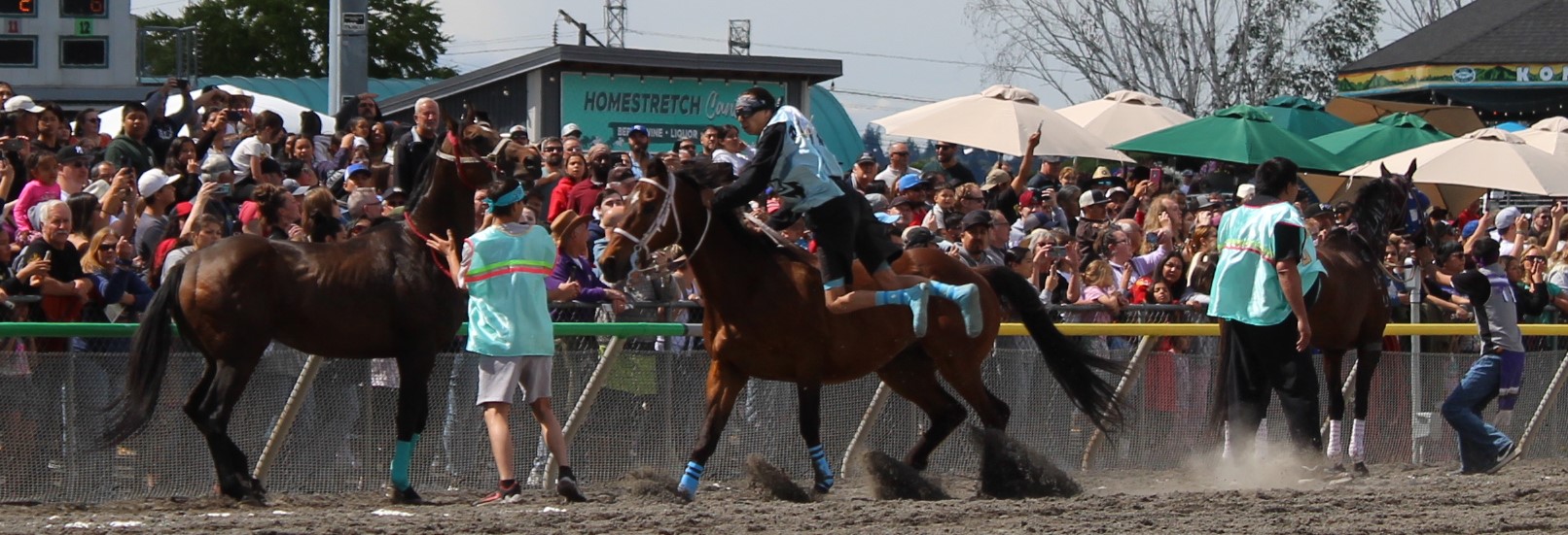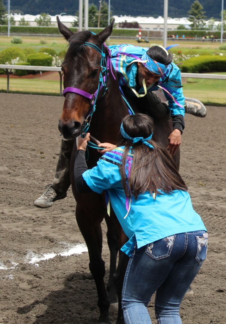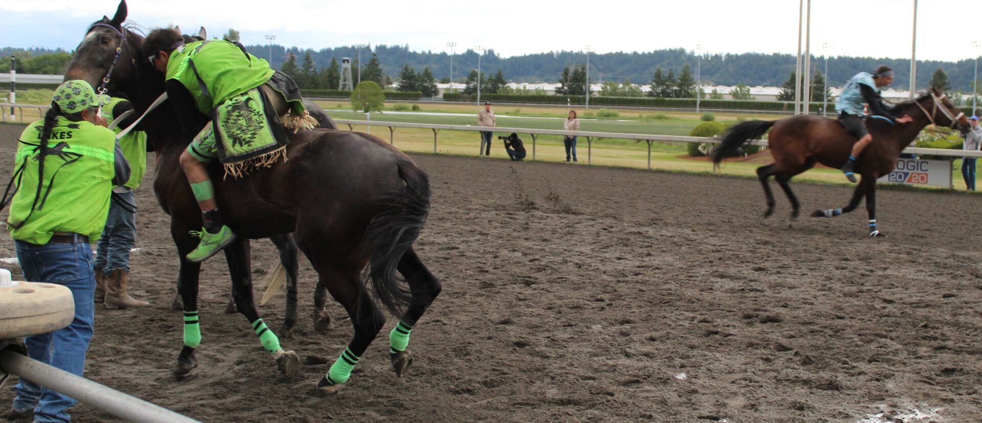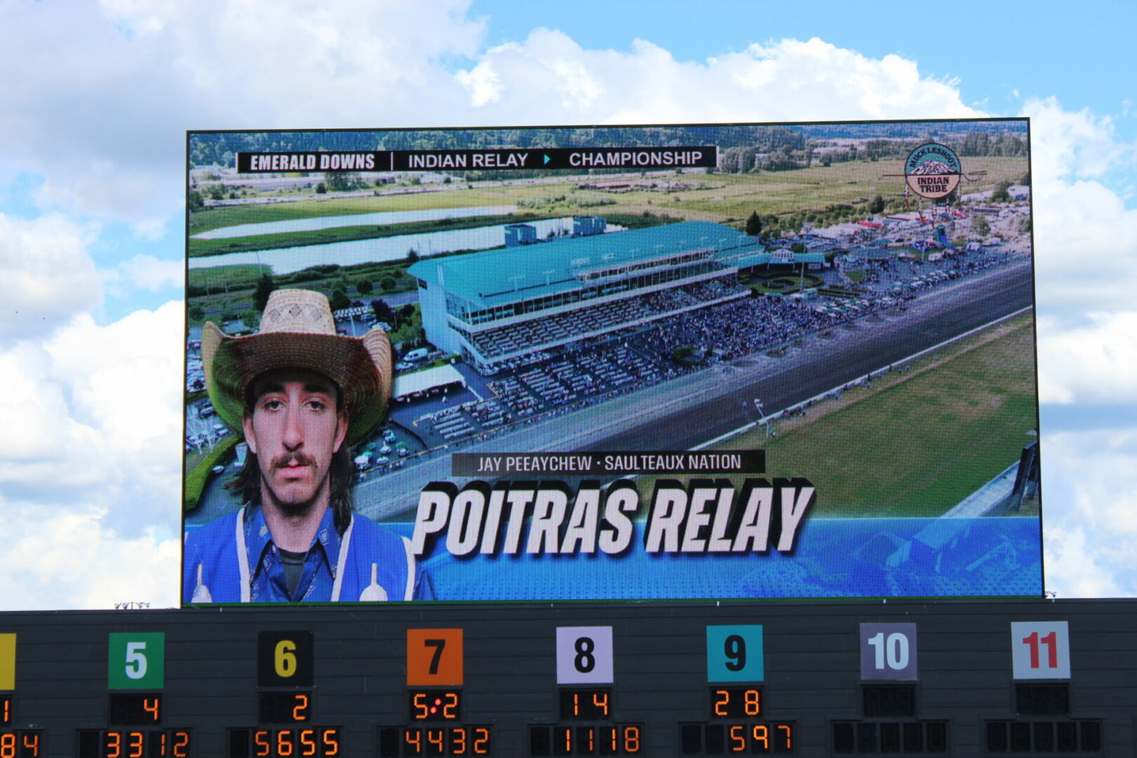 The relay team from Meadowlake, Saskatchewan made their first appearance at the Indian Relay at Emerald Downs a winning one. The team is owned by Curtis Poitras. They have previously competed in both Thoroughbred races and Indian Relay all over the country and Canada. First prize in the Championship heat was worth $11,200.