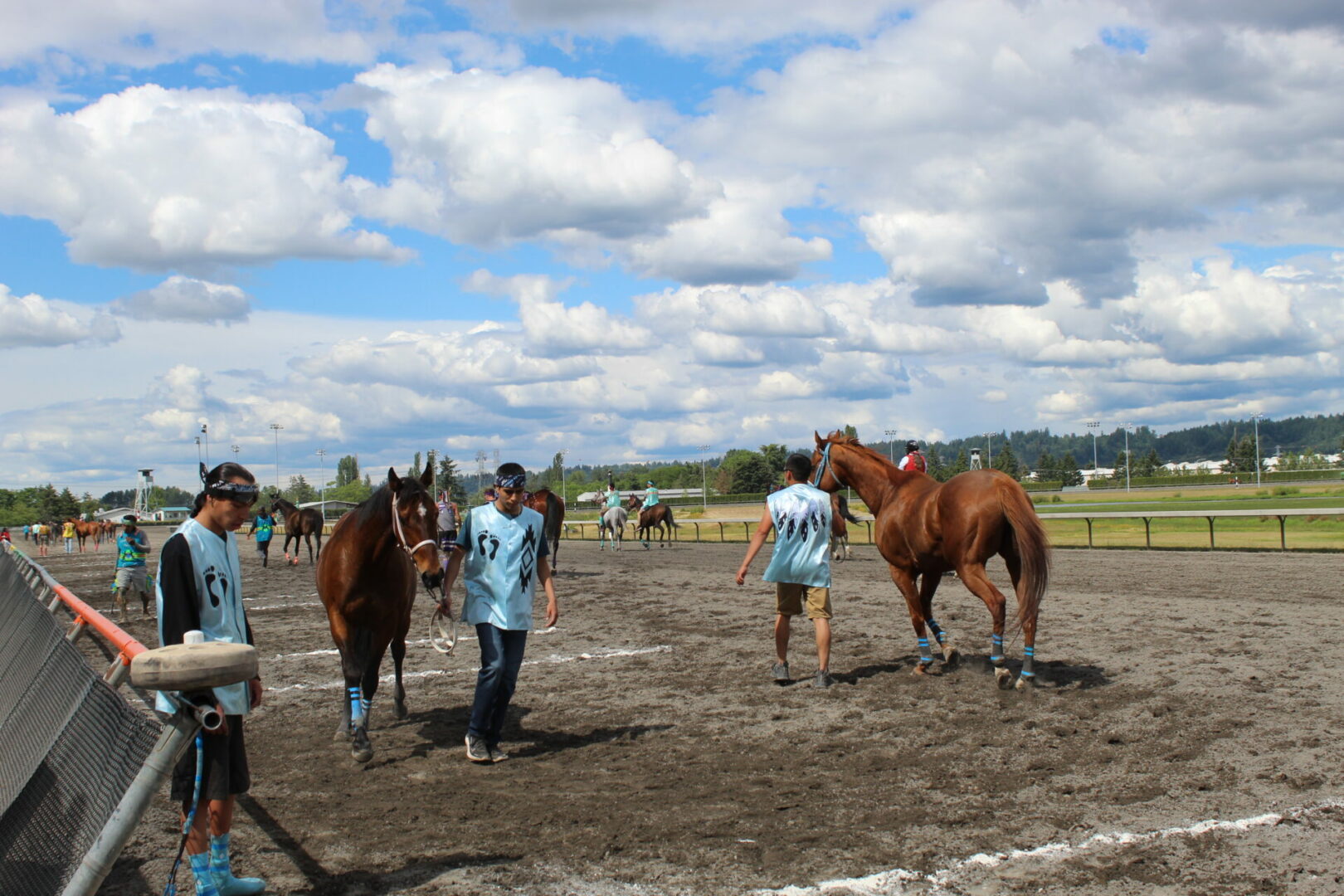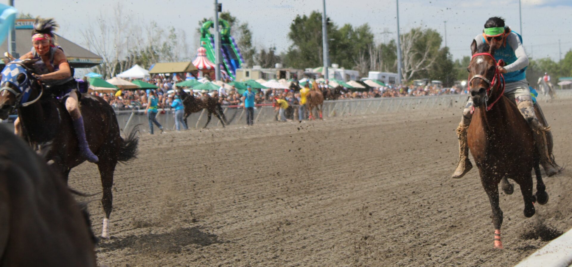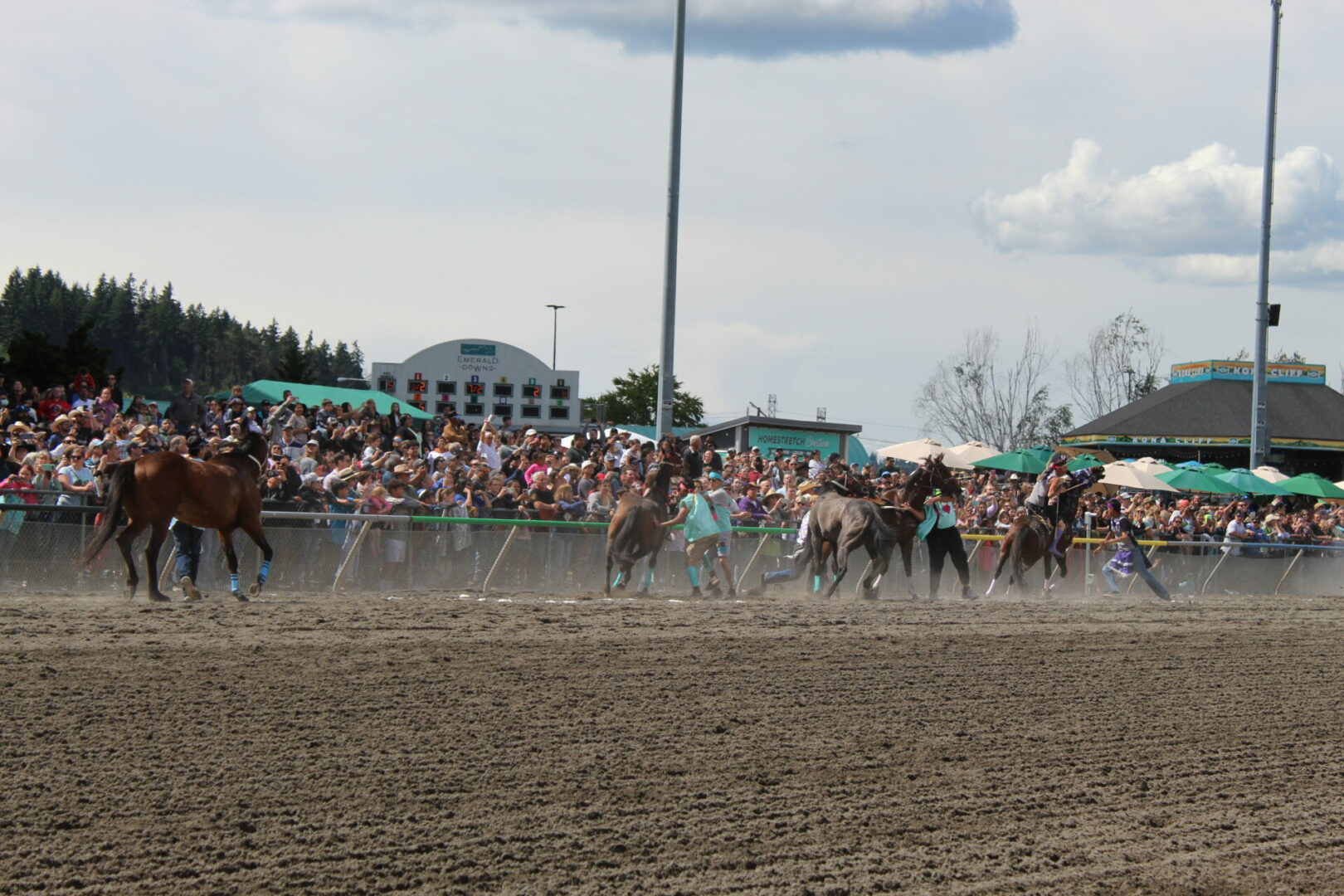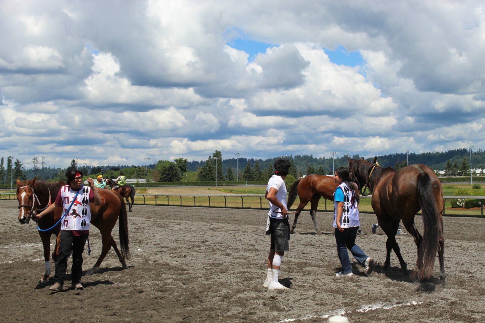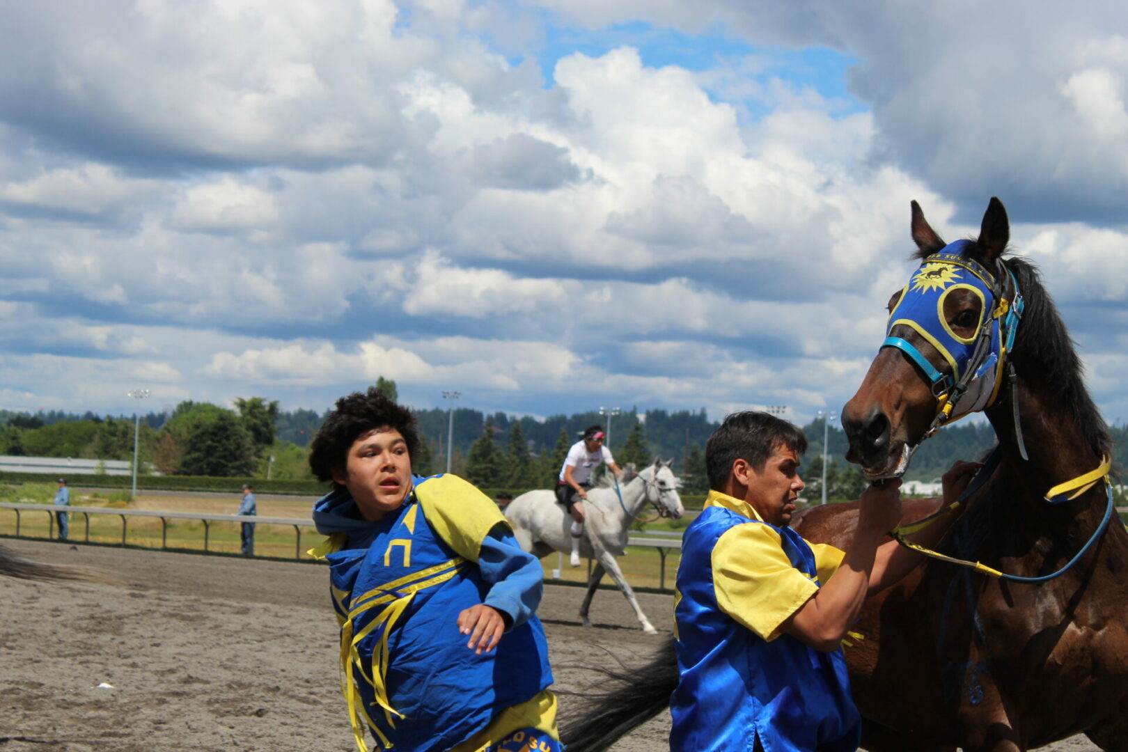 The relay team from Meadowlake, Saskatchewan made their first appearance at the Indian Relay at Emerald Downs a winning one. The team is owned by Curtis Poitras. They have previously competed in both Thoroughbred races and Indian Relay all over the country and Canada. First prize in the Championship heat was worth $11,200.