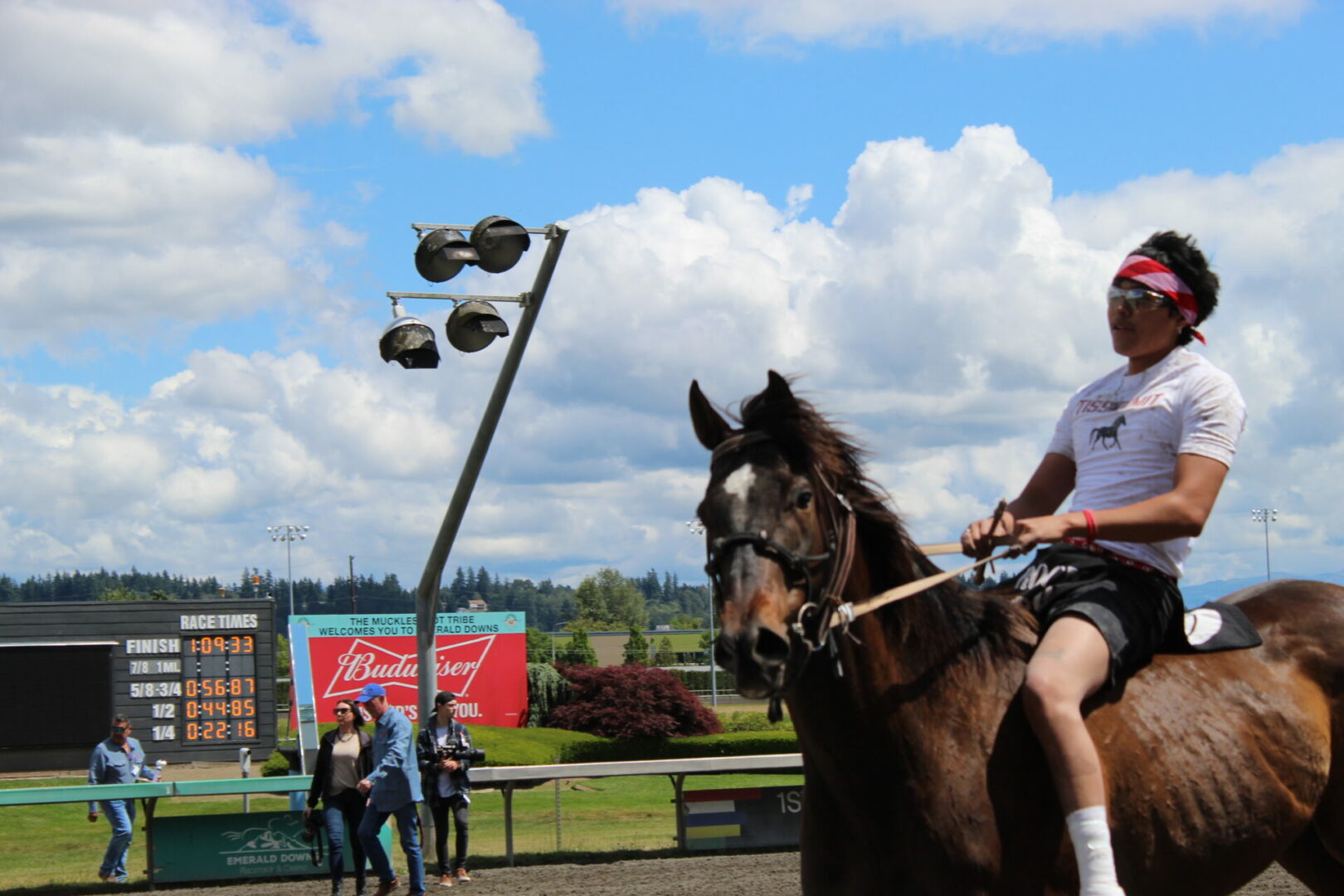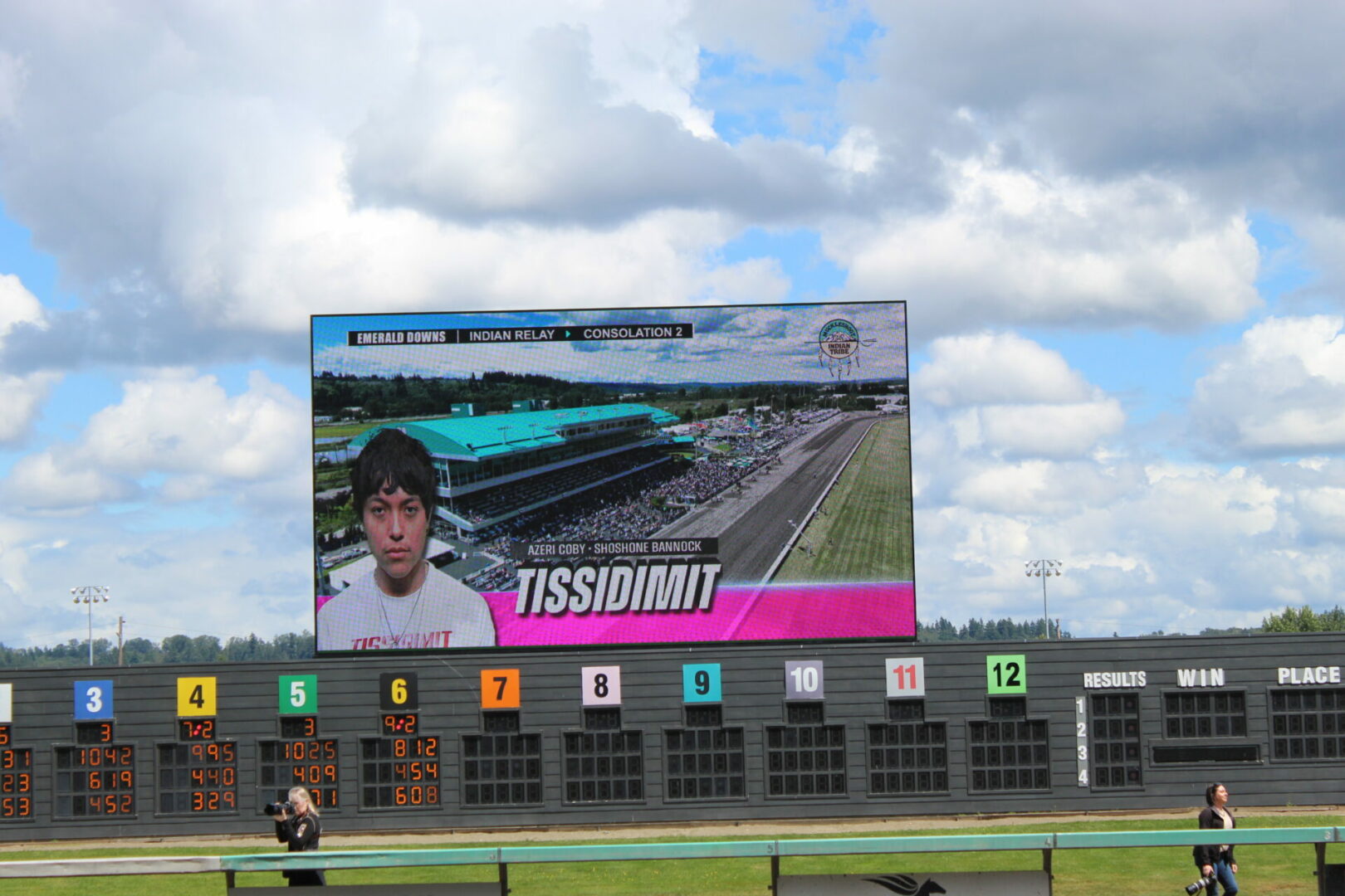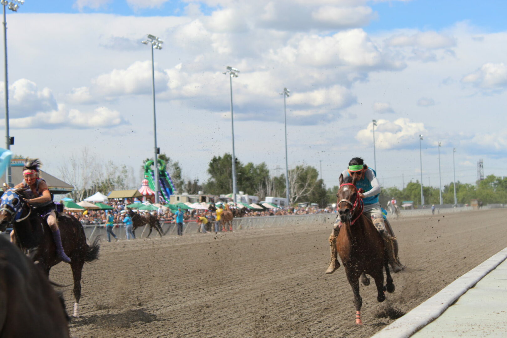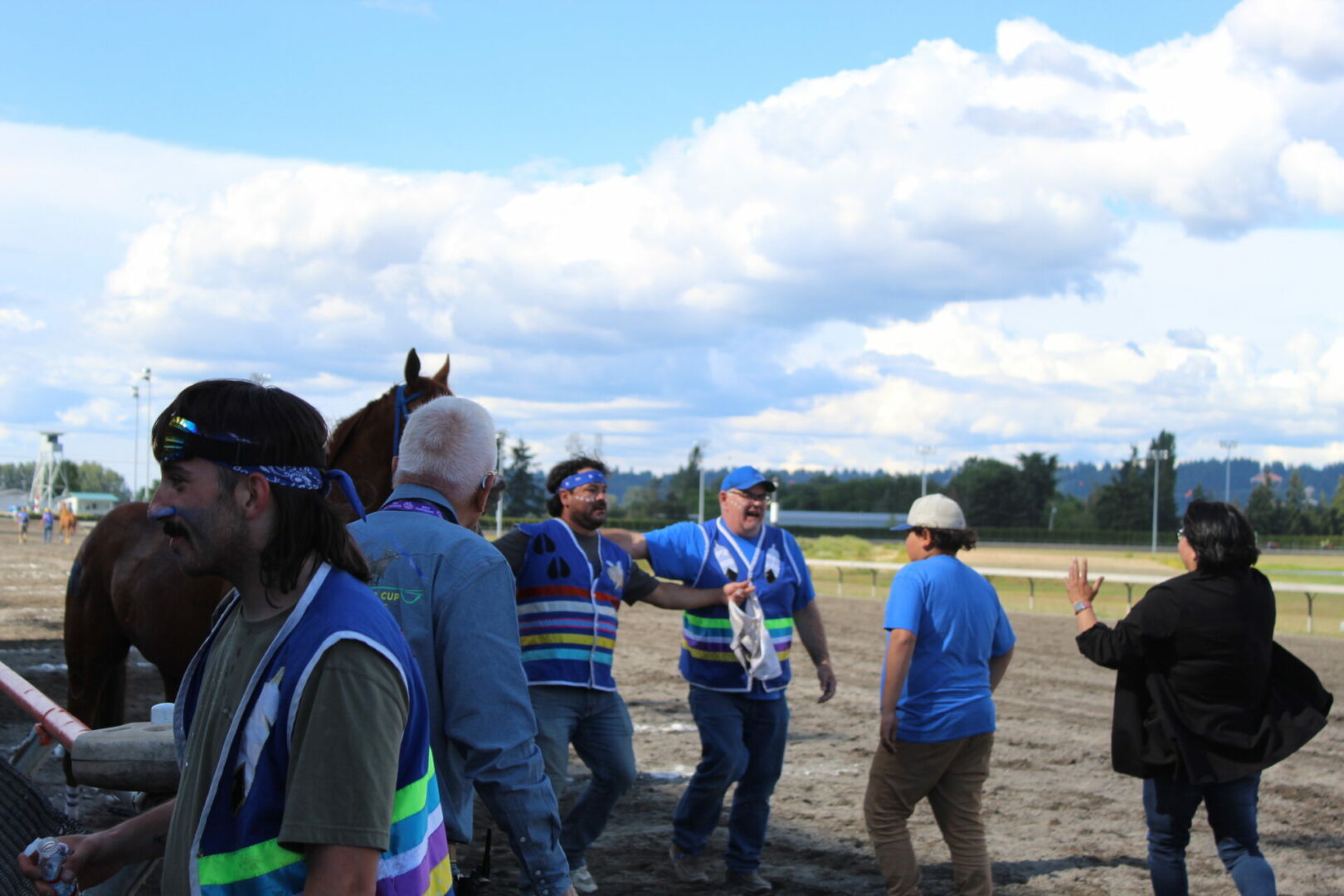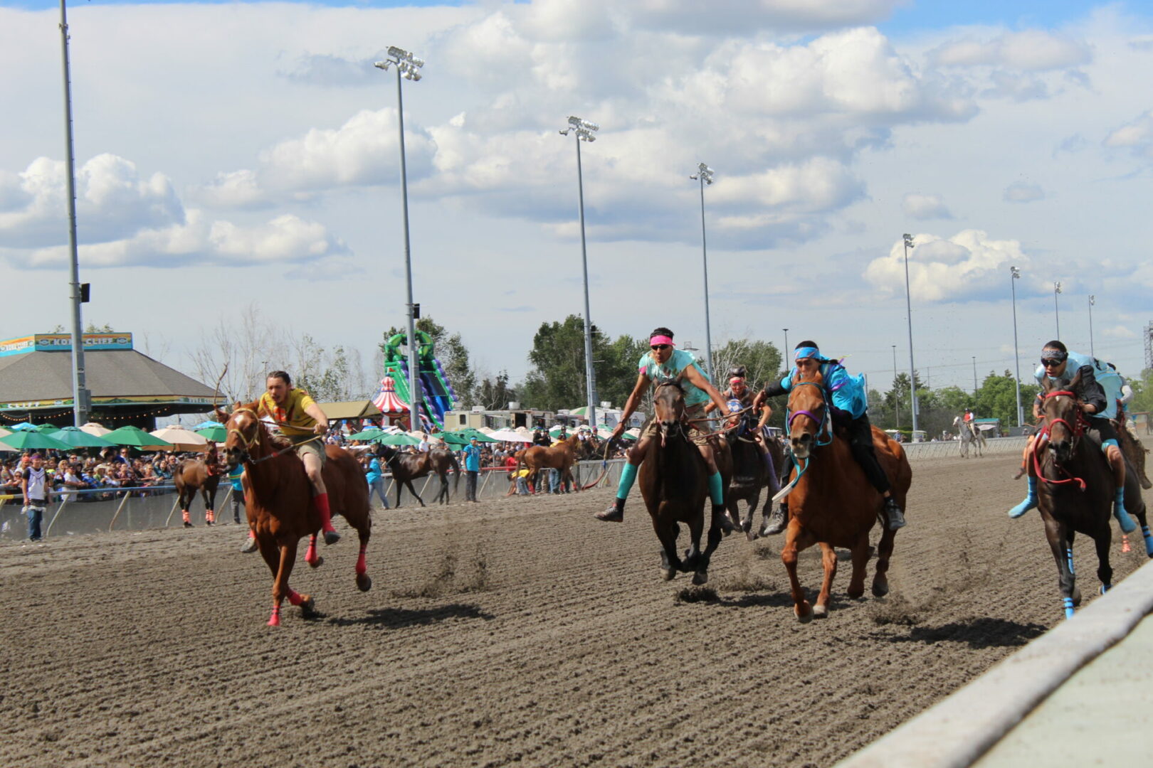 The relay team from Meadowlake, Saskatchewan made their first appearance at the Indian Relay at Emerald Downs a winning one. The team is owned by Curtis Poitras. They have previously competed in both Thoroughbred races and Indian Relay all over the country and Canada. First prize in the Championship heat was worth $11,200.