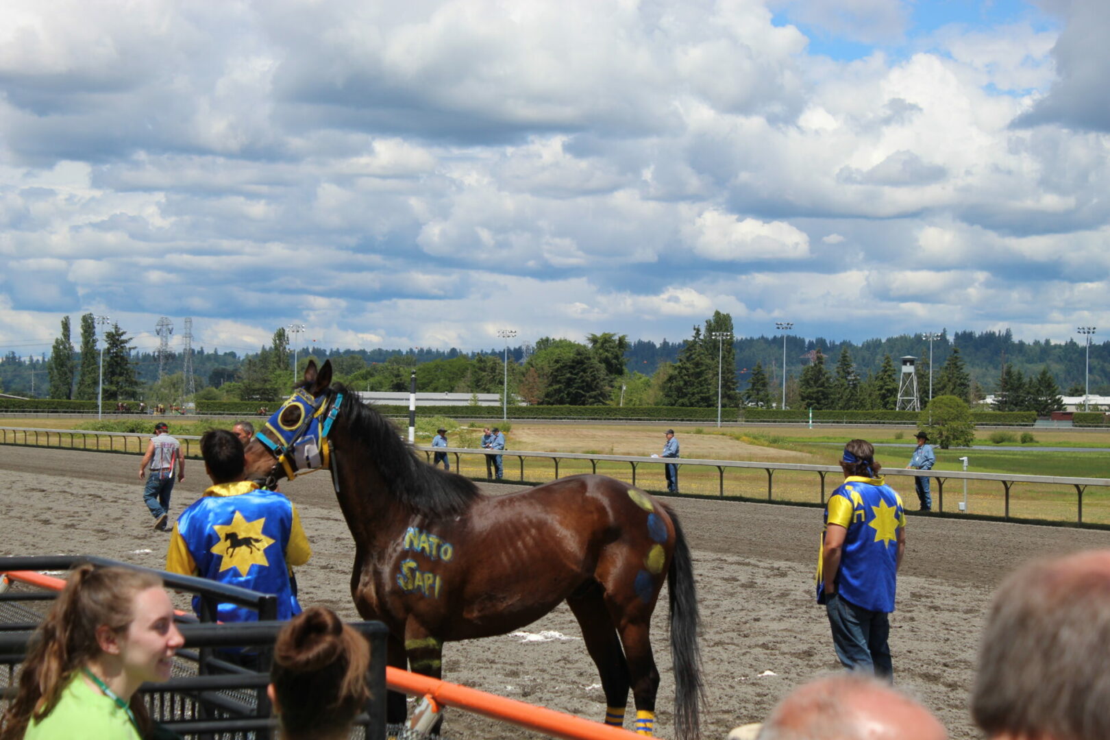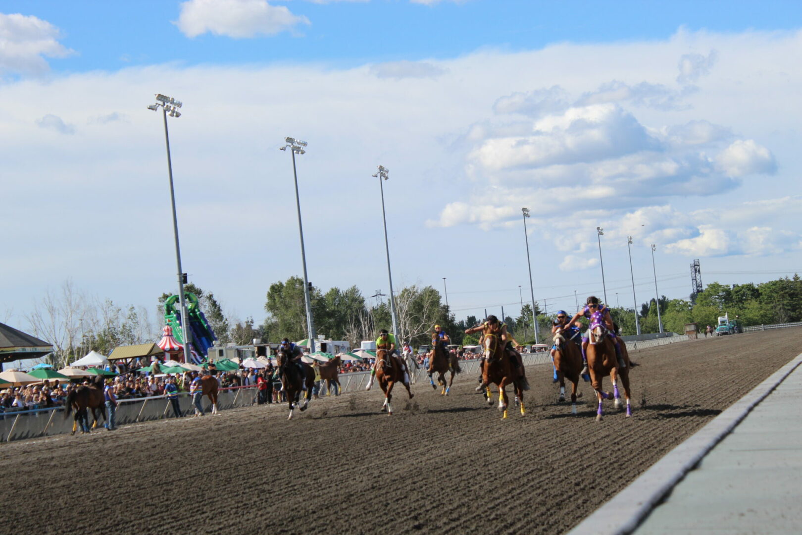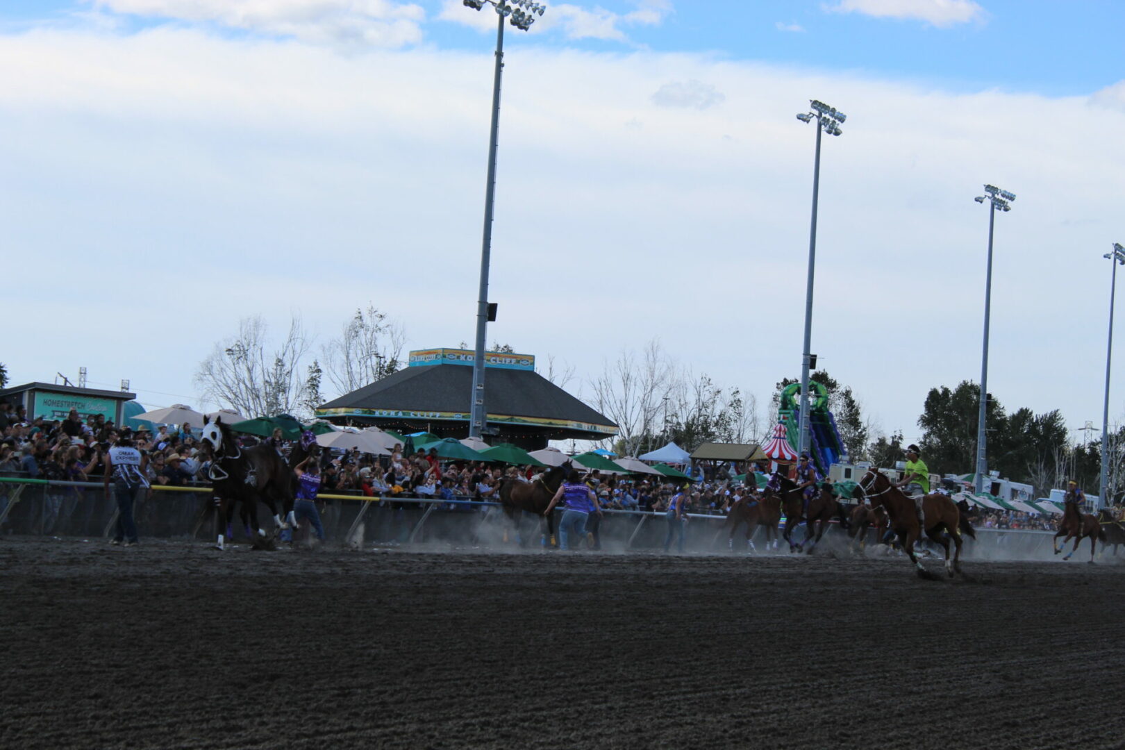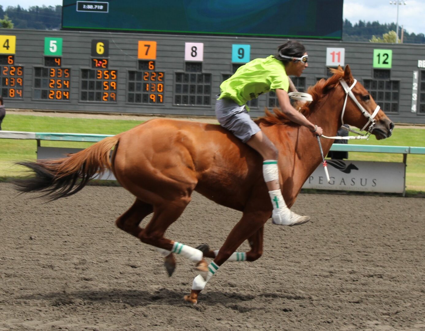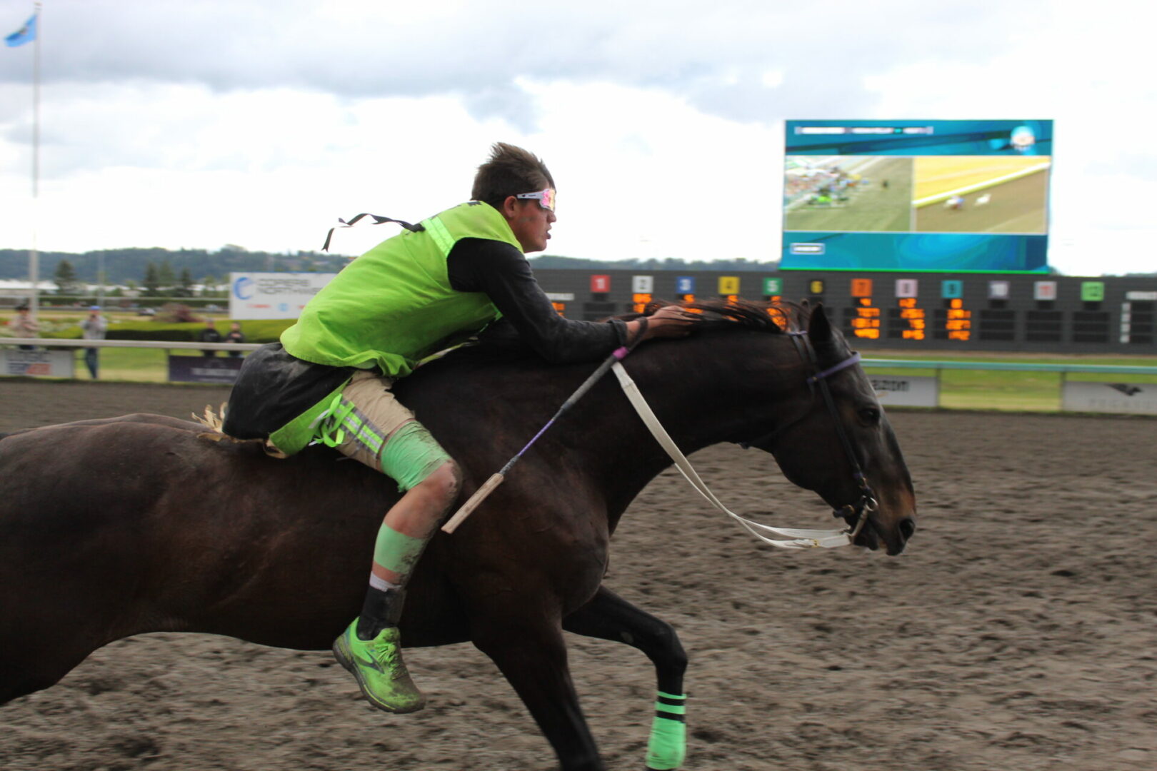 The relay team from Meadowlake, Saskatchewan made their first appearance at the Indian Relay at Emerald Downs a winning one. The team is owned by Curtis Poitras. They have previously competed in both Thoroughbred races and Indian Relay all over the country and Canada. First prize in the Championship heat was worth $11,200.
