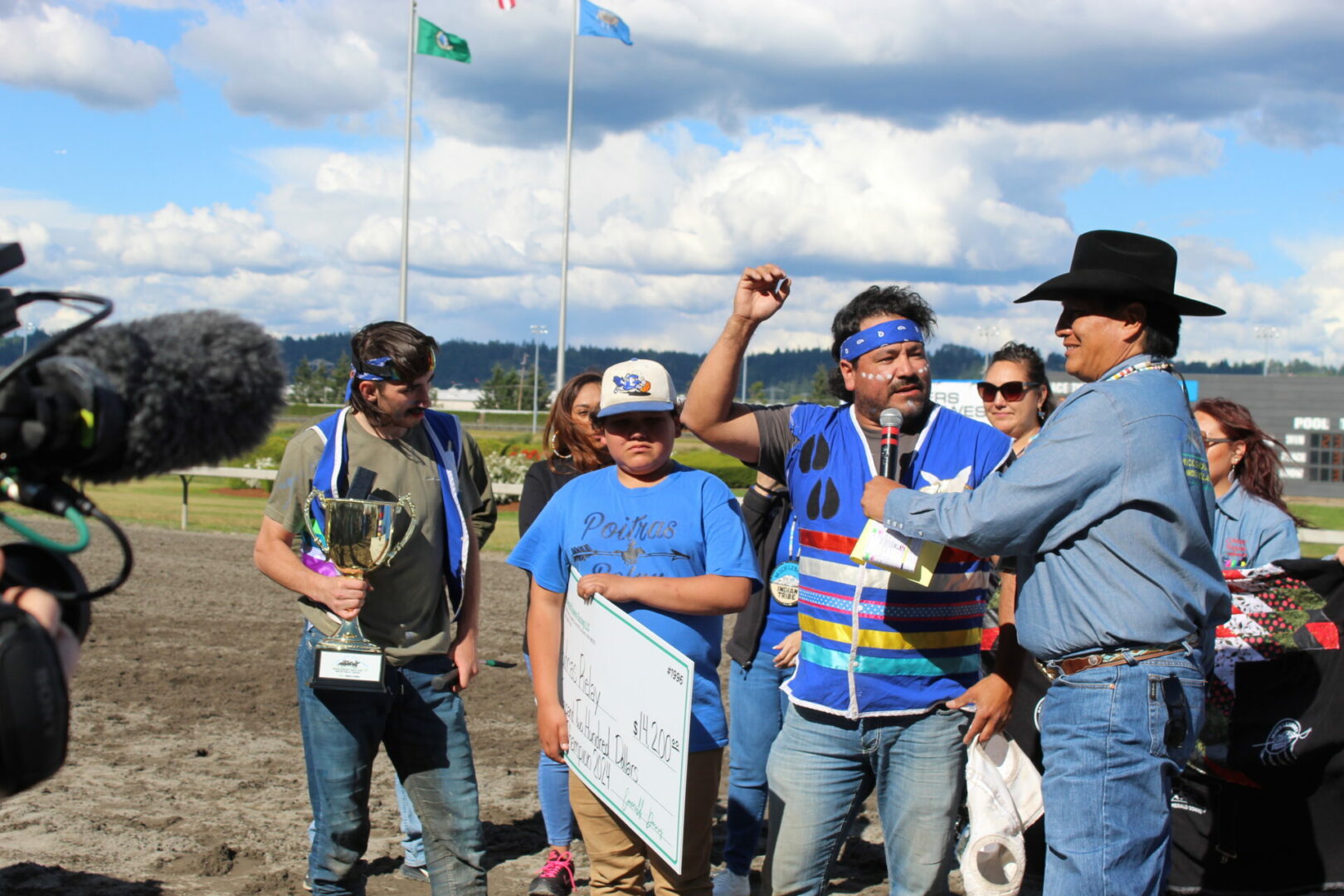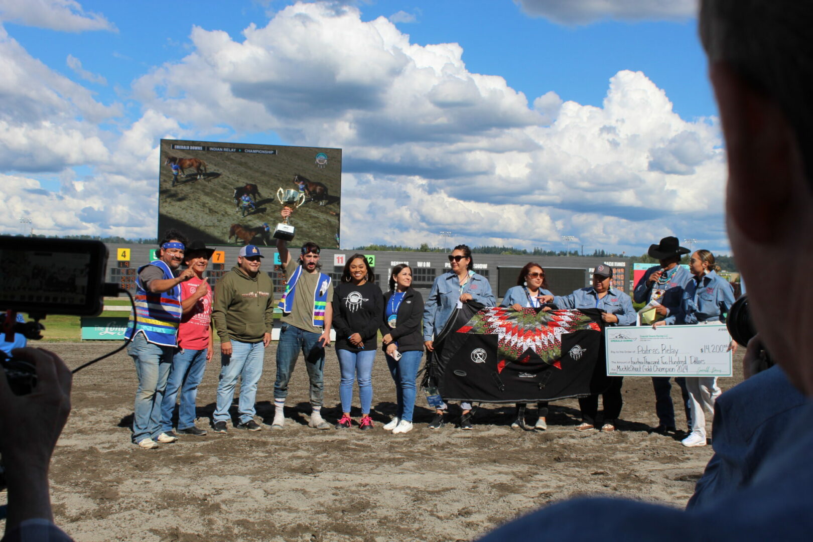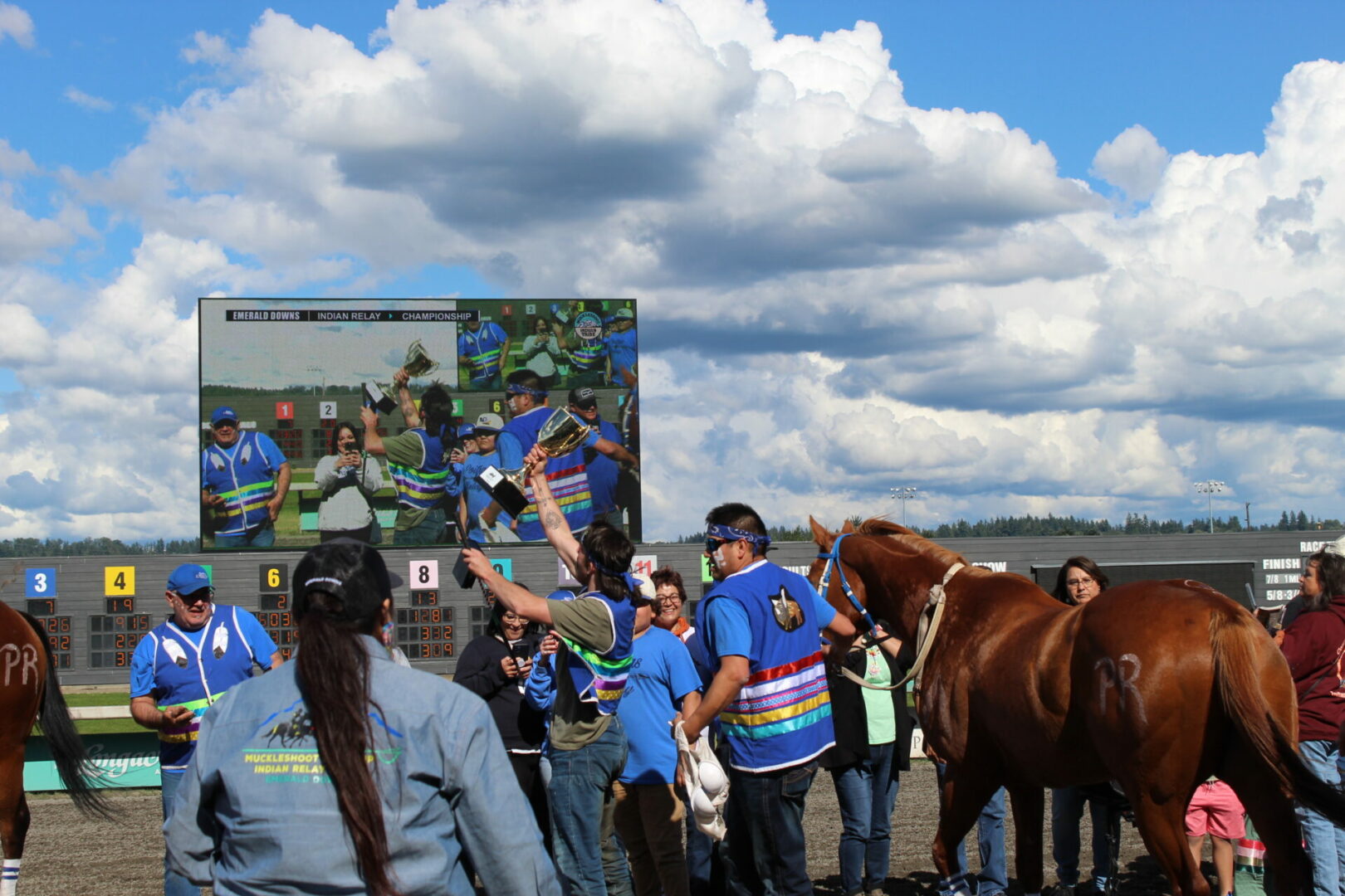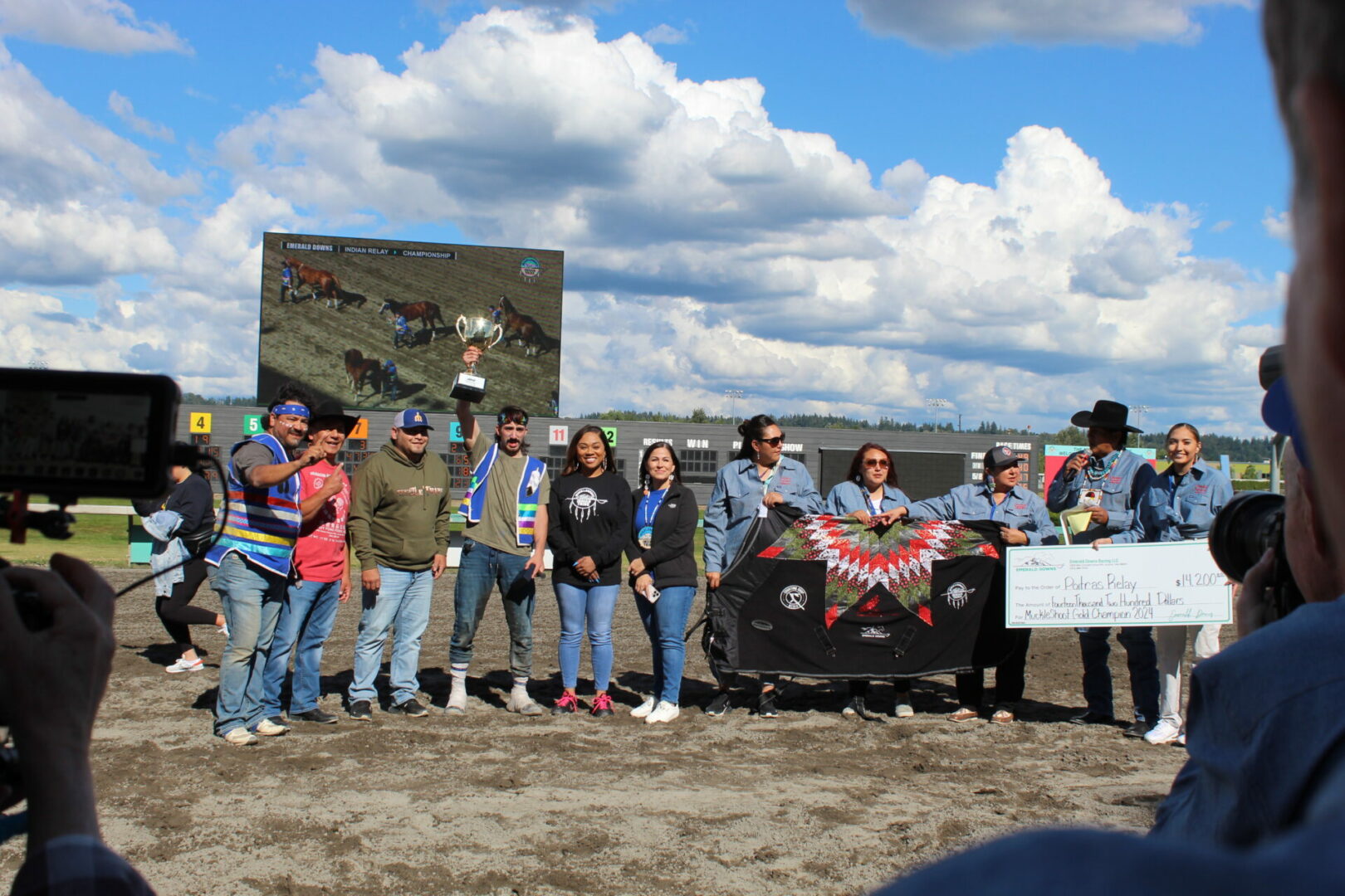 We did it!, We did it! yelled winning rider Jay Peeaychew as the Poitras Relay team celebrated after winning the Muckleshoot Gold Cup Championship in exciting fashion.