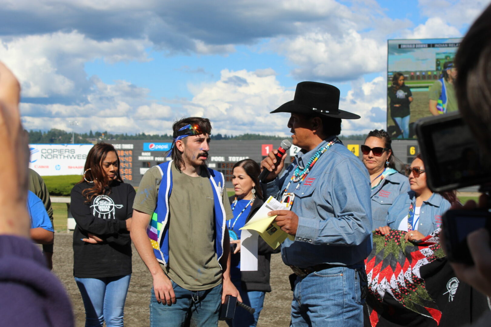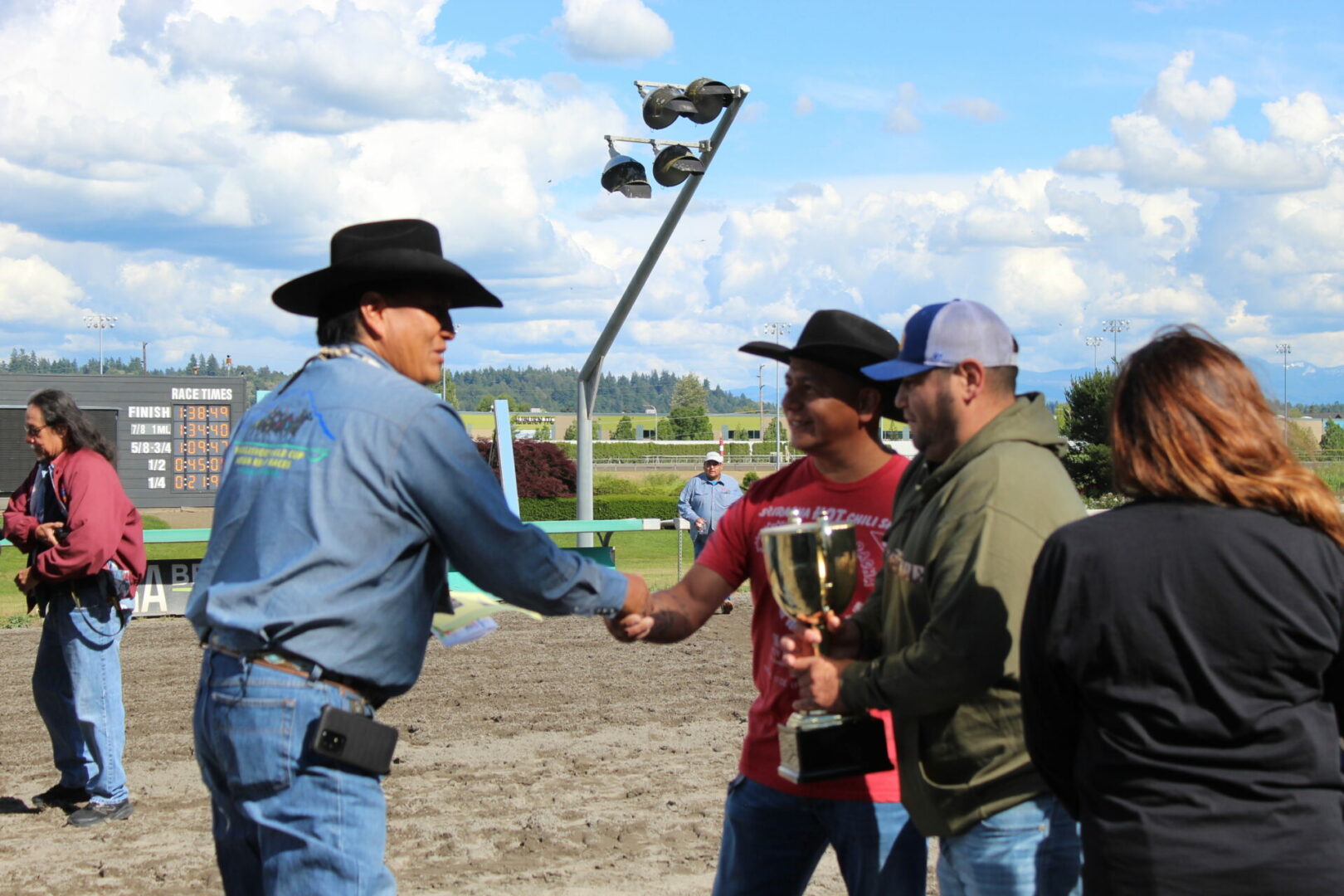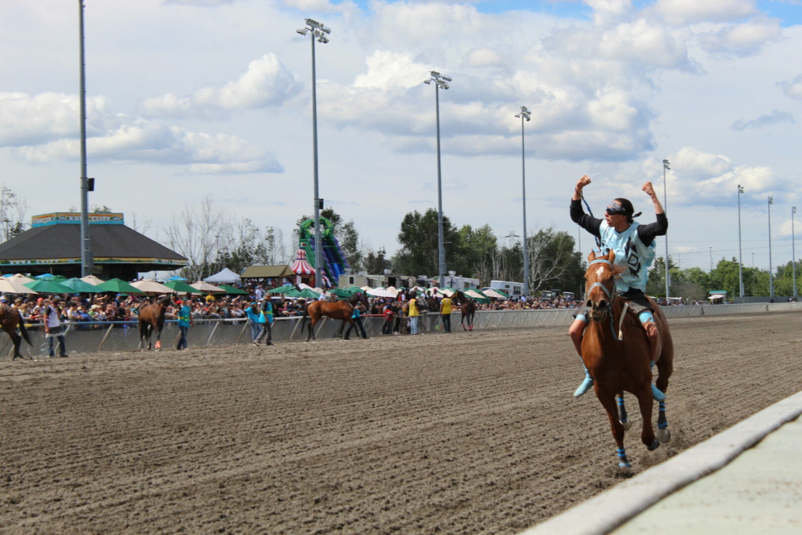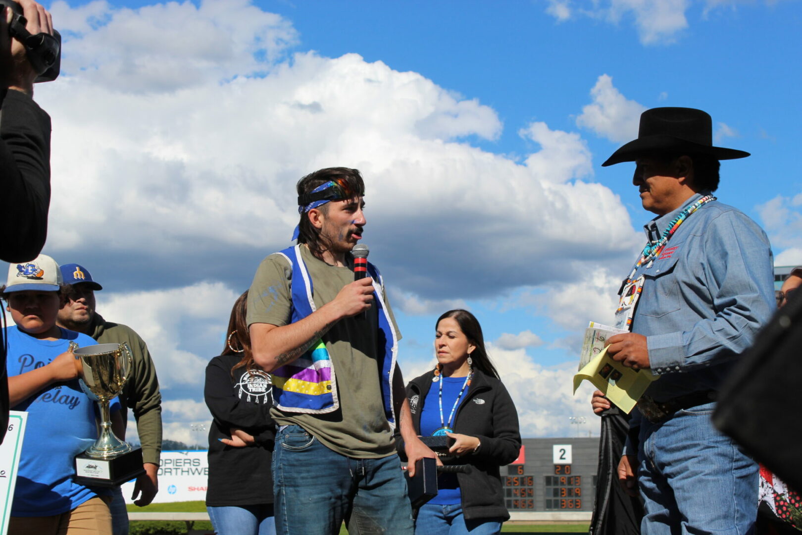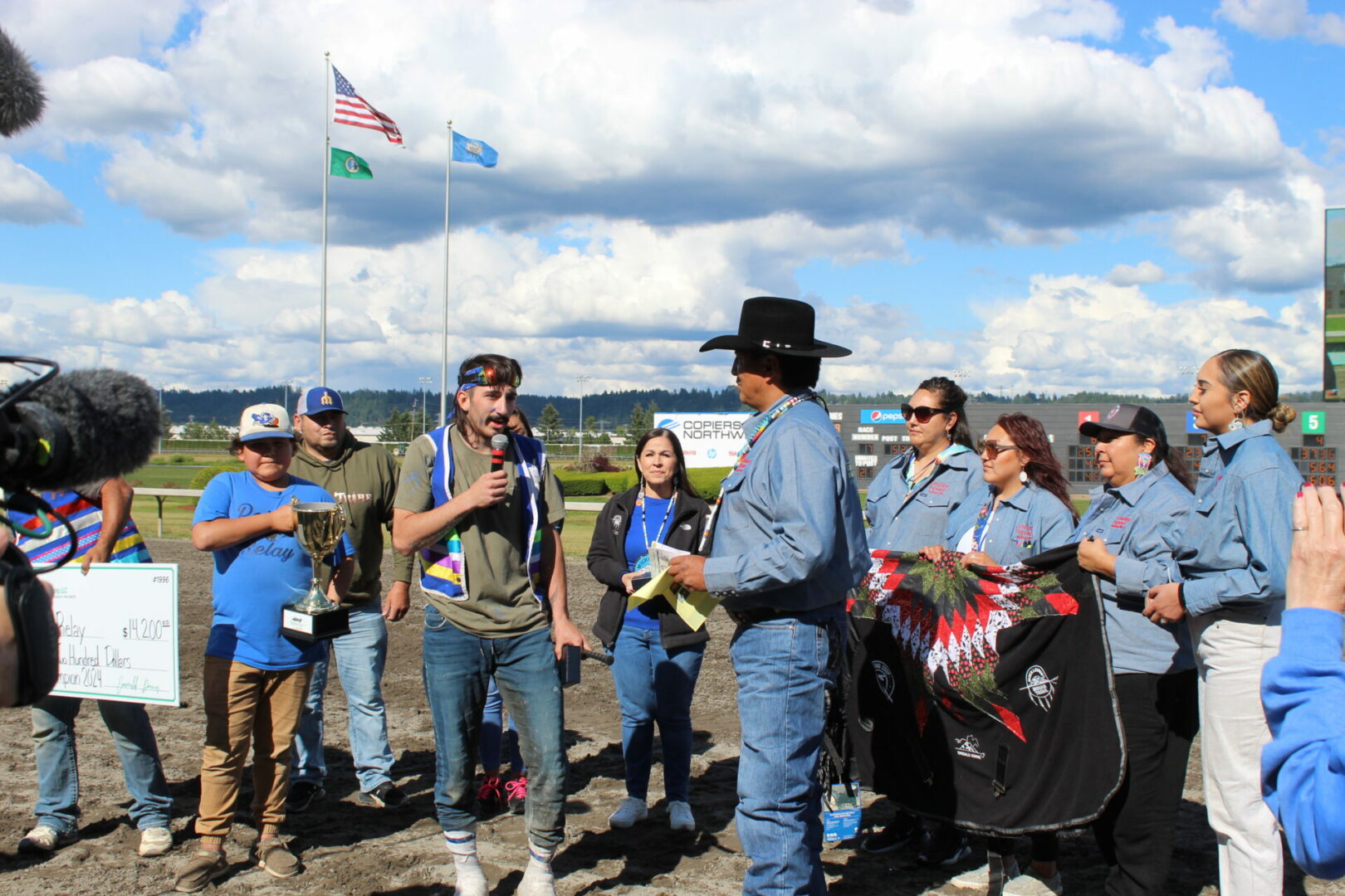 We did it!, We did it! yelled winning rider Jay Peeaychew as the Poitras Relay team celebrated after winning the Muckleshoot Gold Cup Championship in exciting fashion.