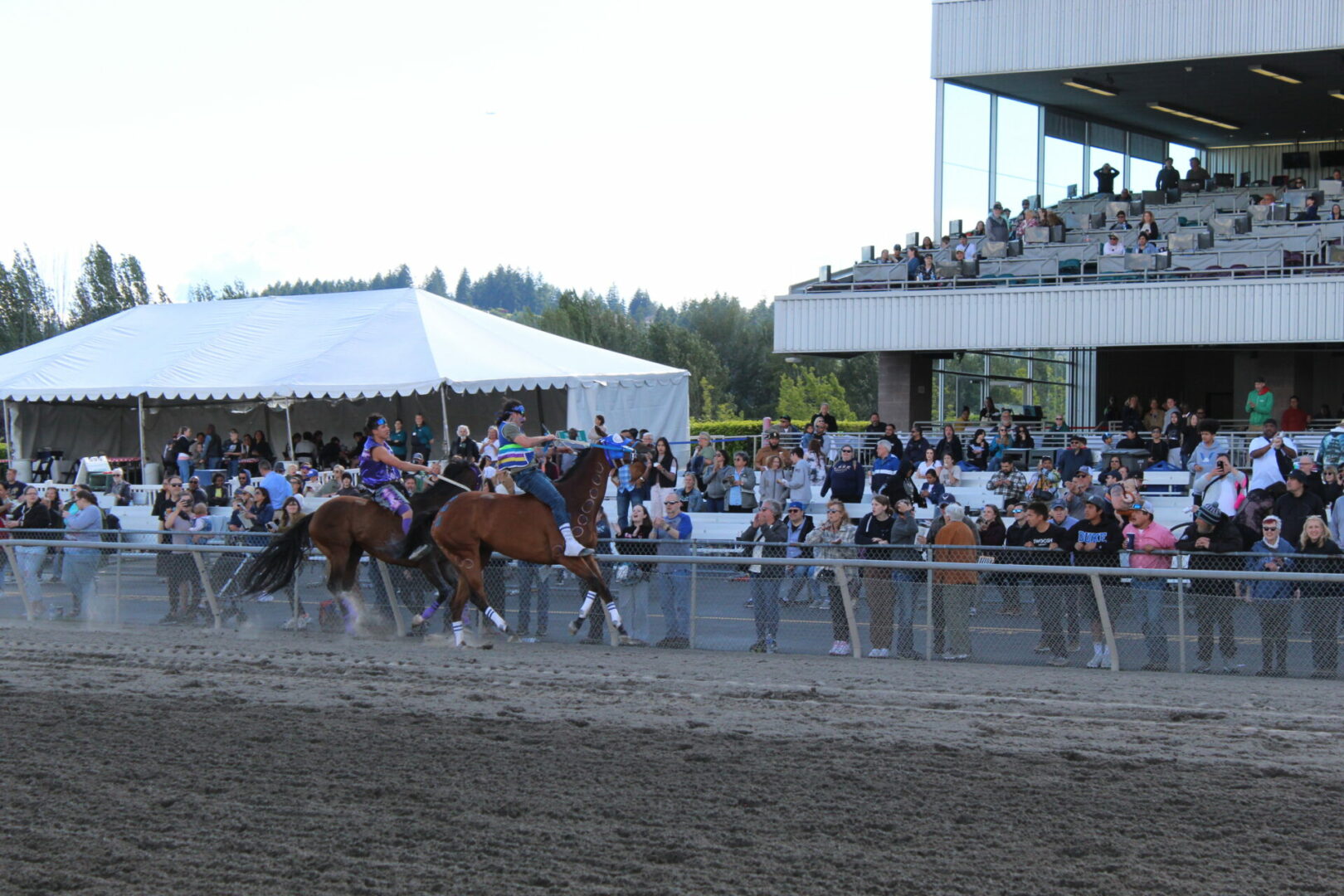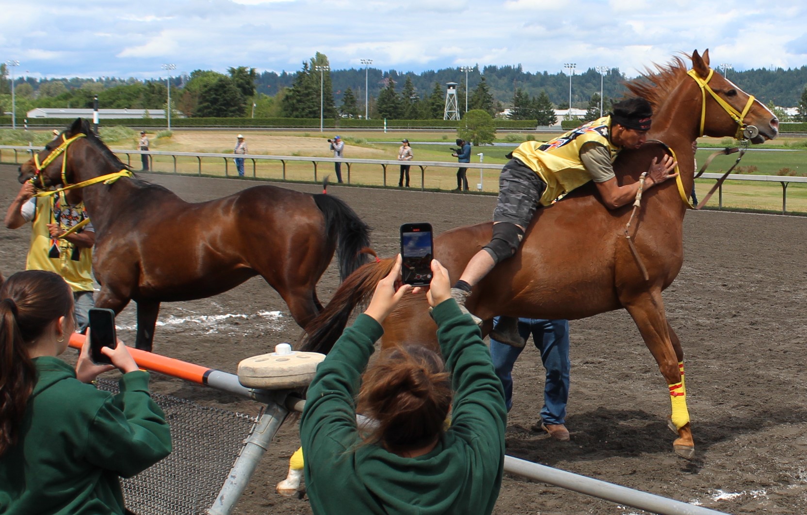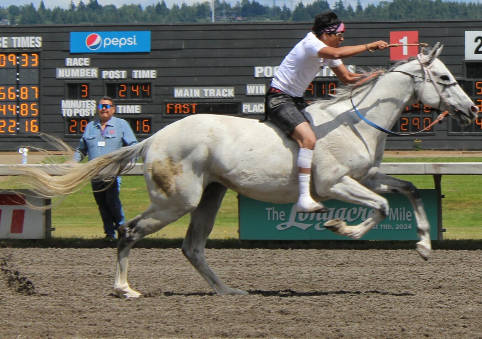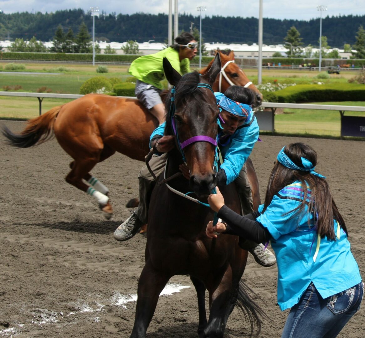 Saturday’s action featured day two of the 2024 Muckleshoot Gold Cup Indian Relay Races. The ninth annual three-day competition culminates with Sunday’s championship $10,000 Muckleshoot Gold Cup.
