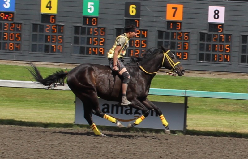 Carlson Relay with Chazz Racine riding posted Saturday’s fastest time, 3:32.32, while edging Poitras Relay in Heat 2. Carlson took the inaugural Muckleshoot Gold Cup in 2016.
