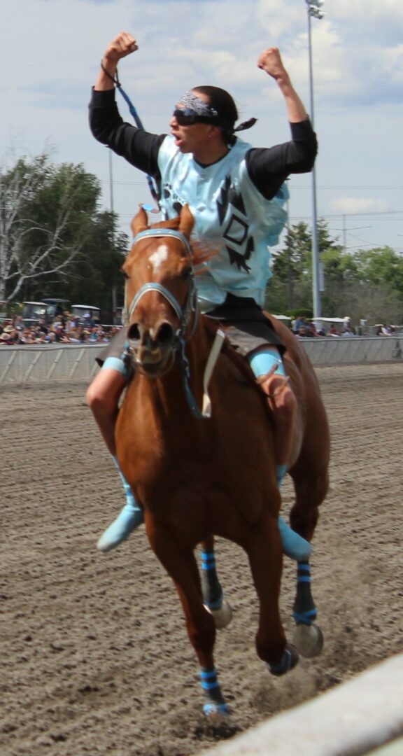 Poitras Relay of the Saulteaux Nation in Saskatchewan, Canada, posted the evening’s fastest time of 3:31.00 for two miles in wining Heat 1 with Jay Peeaychew riding. Defending champion Two Medicine of the Blackfeet Nation in Browning, MT, finished fifth in the second heat and needs a big race Saturday to qualify for the final.