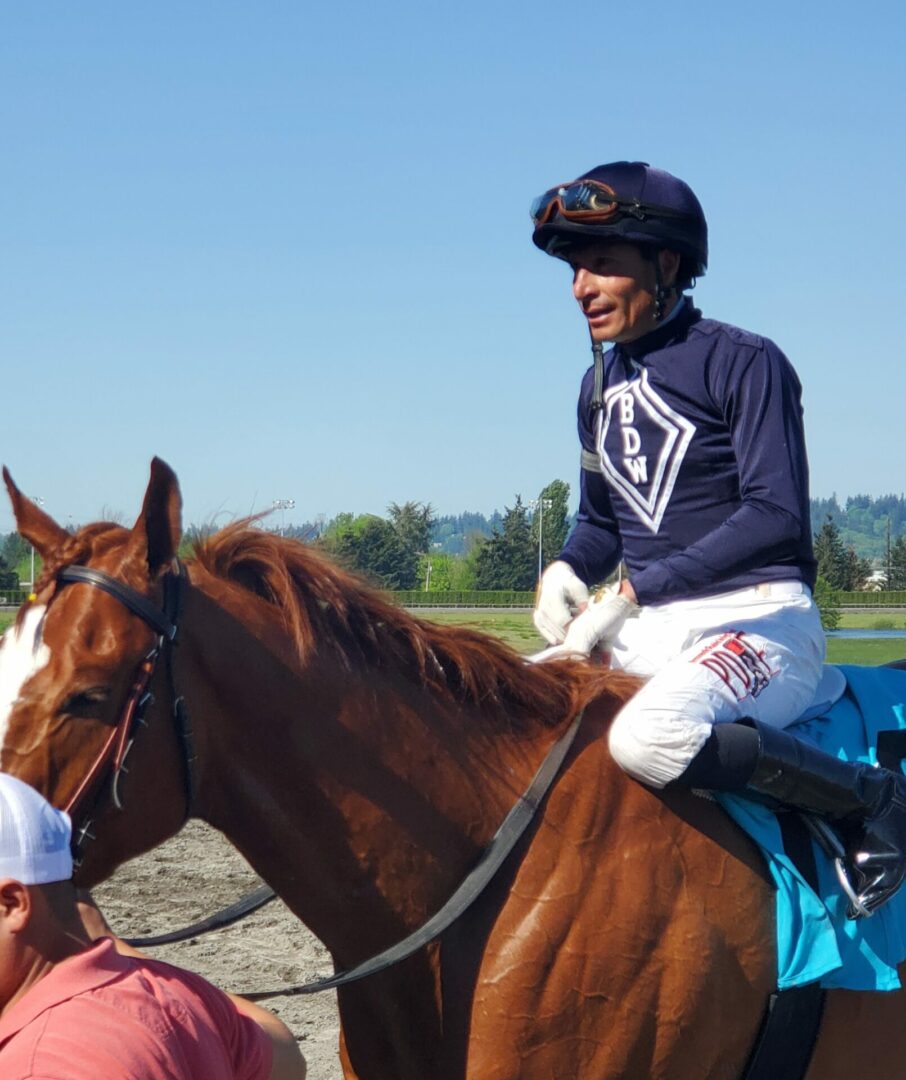 Luis Reyes has turned around his up and down beginning at Emerald Downs with hos 2nd big day of the year. The 1st was winning his 1st Stakes race on Neiman in the Budweiser Stakes on June 23rd. He has had days with 2 wins but Saturday was his 1st triple. Reyes has settled in and has become a big threat and is currently 4th in wins and 5th in earnings.
