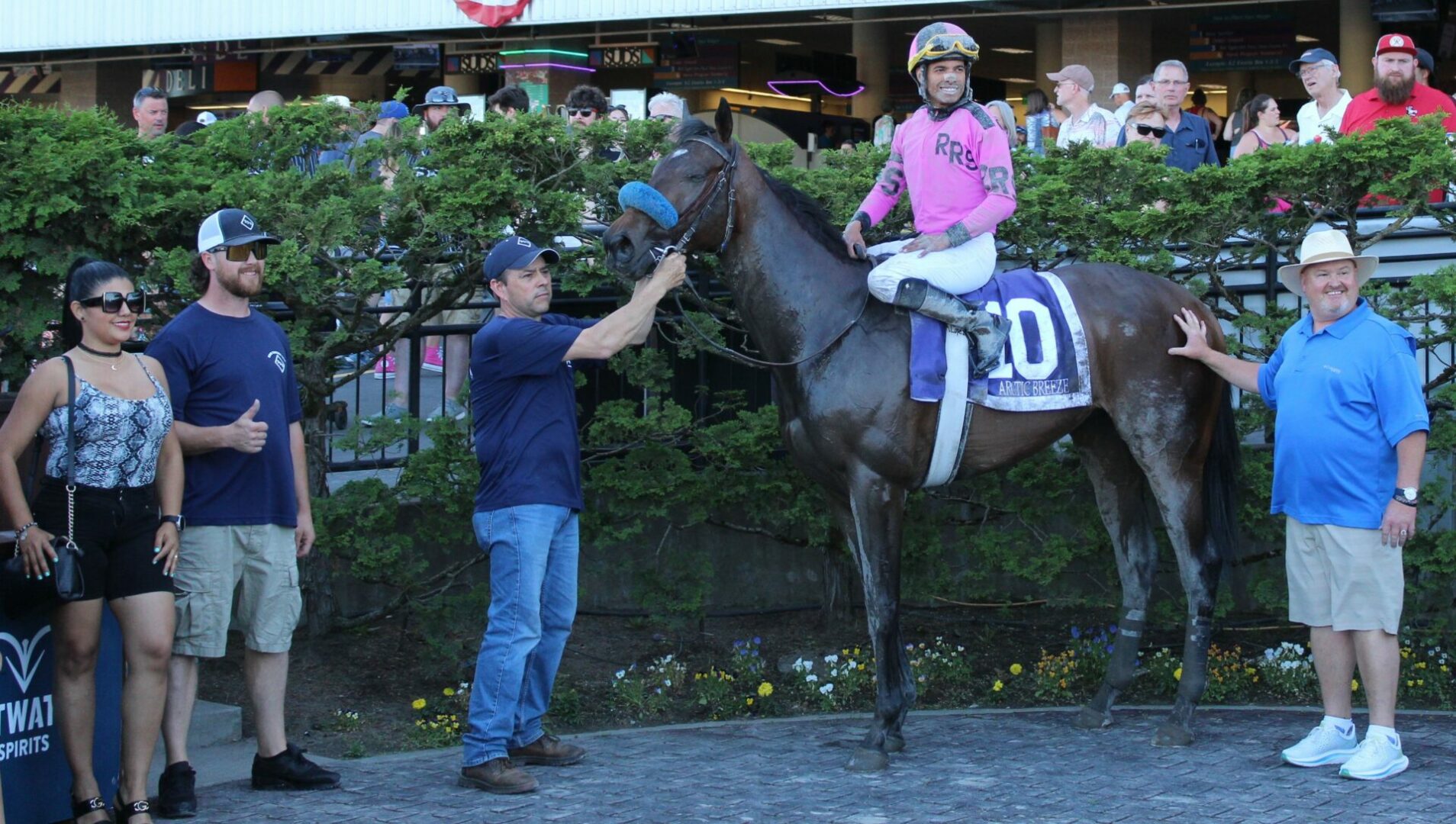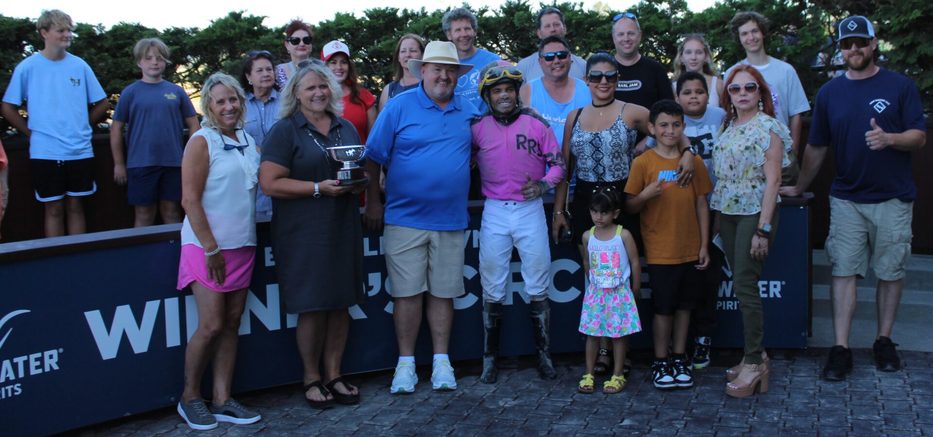 Trainer Frank Lucarelli, owner Billy Speed Racing and jockey Isaias Enriquez turned in the day-to-day daily double by winning Saturday night’s finale with 40-1 Sporty Nugget by a length and followed that up with 1-1 Hickory Wind’s 15 length victory in the opener on Sunday. Lucarelli added a 3 in a row as he won the 7th race on Saturday as well so he won the 7th and 8th on Saturday and 1st race on Sunday for the 3 wins in a row feat.