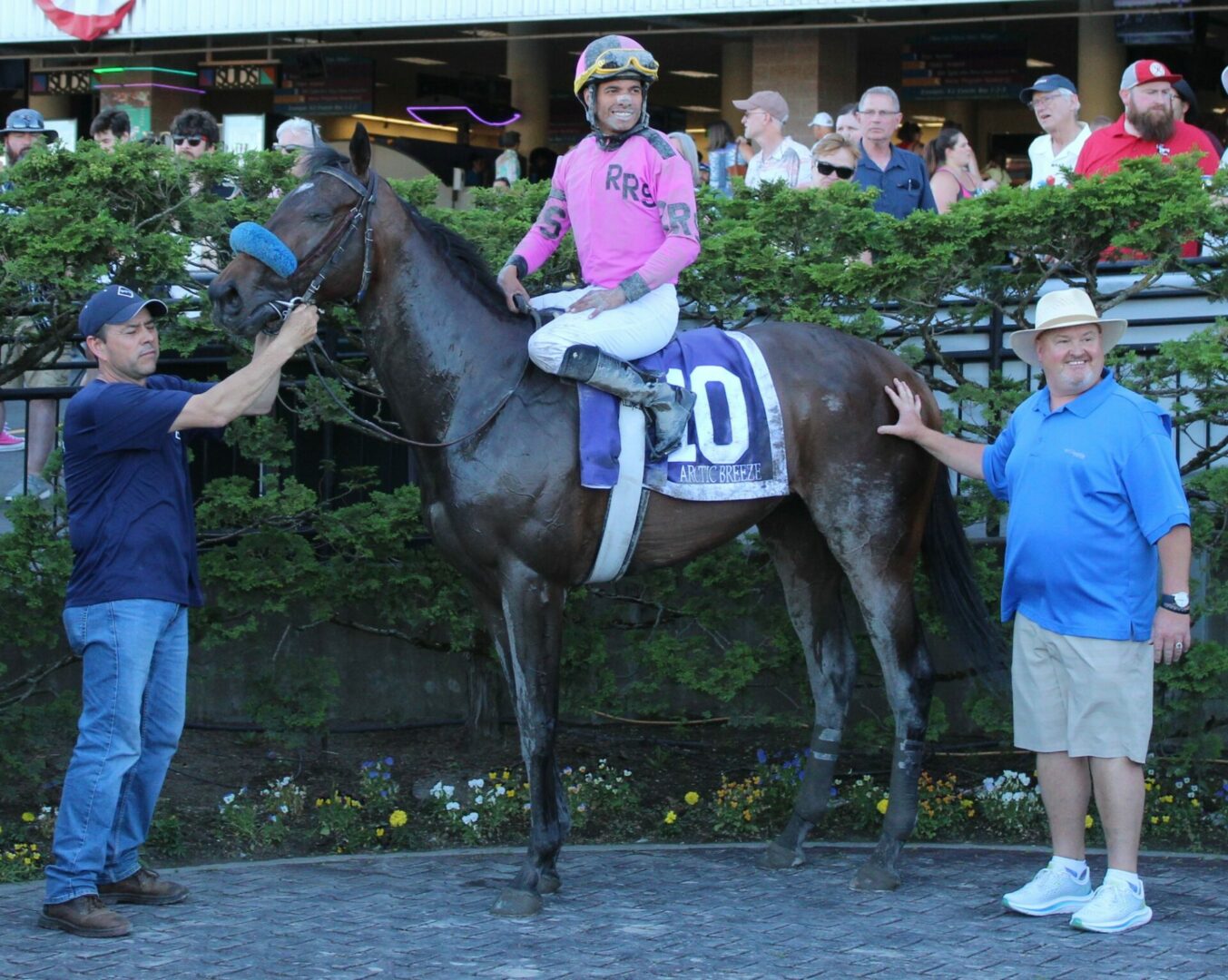 Artic Breeze returned $25.64, $9.78 and $5.66. The $1 exacta paid $54.15, the 50-cent trifecta $132.94 and the $1 superfecta $2,815.20. The pick 3 returned $311.81.