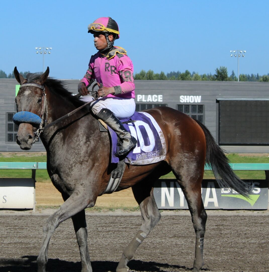 Artic Breeze stopped the clock in 1:17.62 and races for Peter Redekop and trained by Blaine Wright. Arctic Breeze is now 3-2-2 from 11 career starts and picked up the $27,500 winners share of the purse to push his earnings to $79,910. The win gave Blaine Wright a sweep of the weekends Stakes races winning Saturday’s Irish Day Stakes with Tougherthantherest. Karlo Lopez ties Silvio Amador for most Stakes wins each winning this weekend and both with 2 wins.