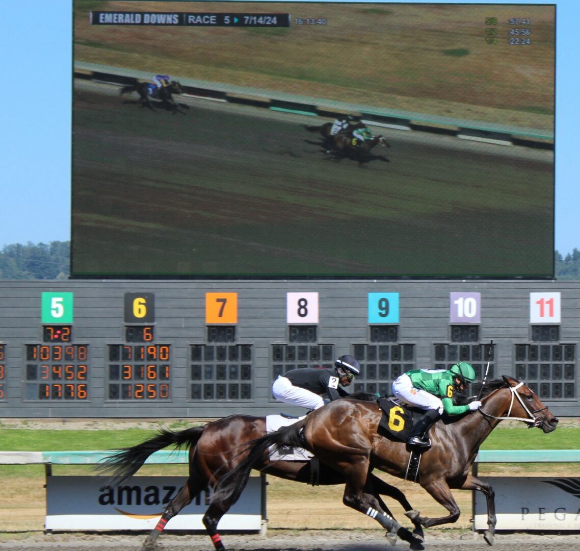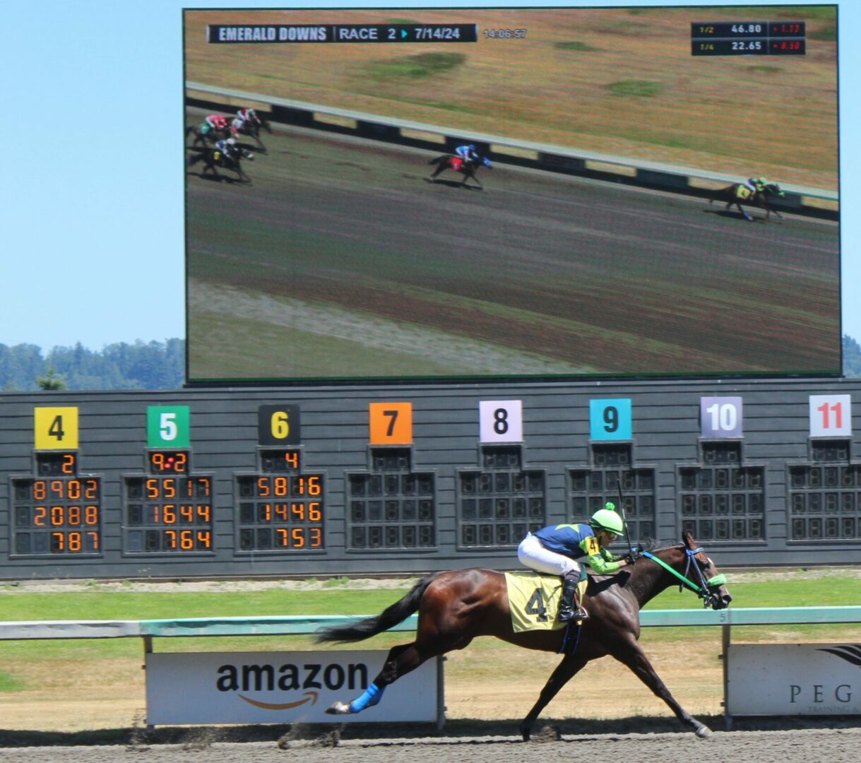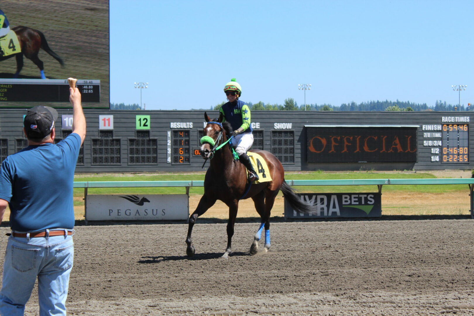 There were 3 new season high pay-outs this week beginning on Saturday with the last race on the card when 40-1 Sporty Nugget stunned the bettors but did not stun Emerald Downs’ Joe Withee who picked him during his pre-race run-down. The $83.80 $2 win pay-off blew out the previous high of $54.98 by Northern Blend back on May 12th.