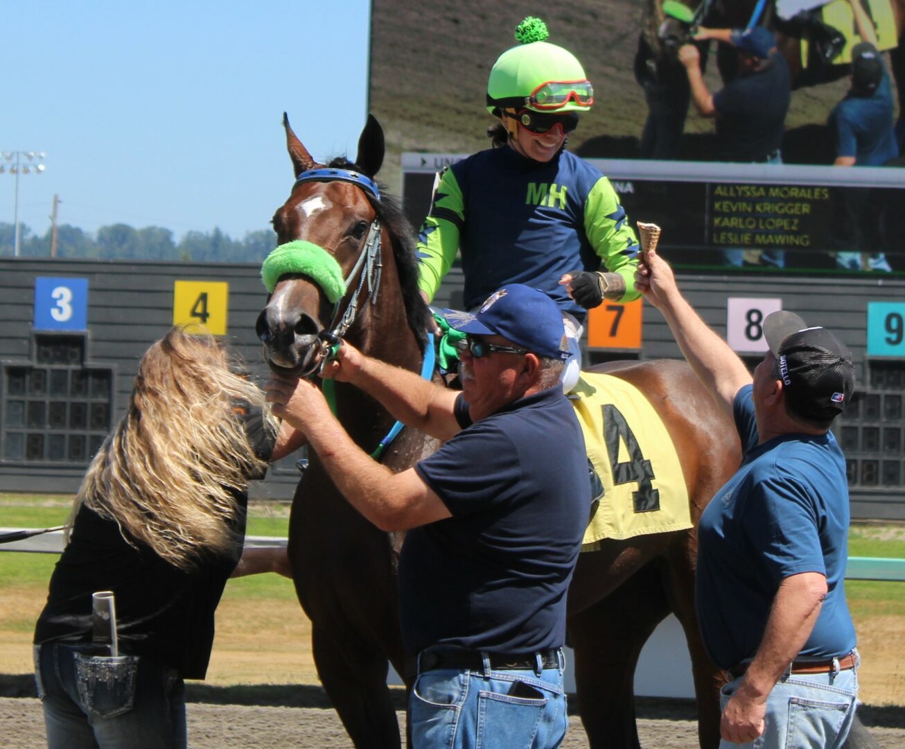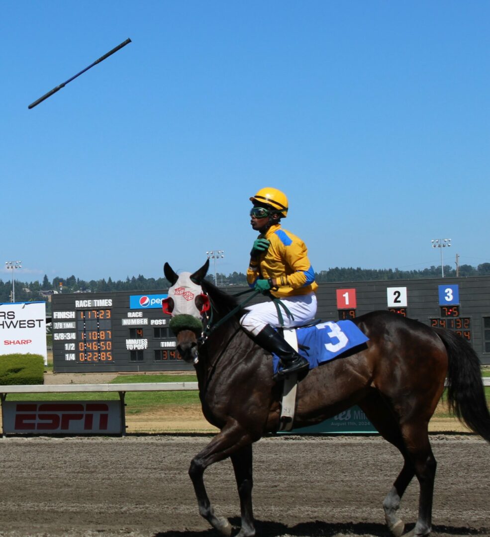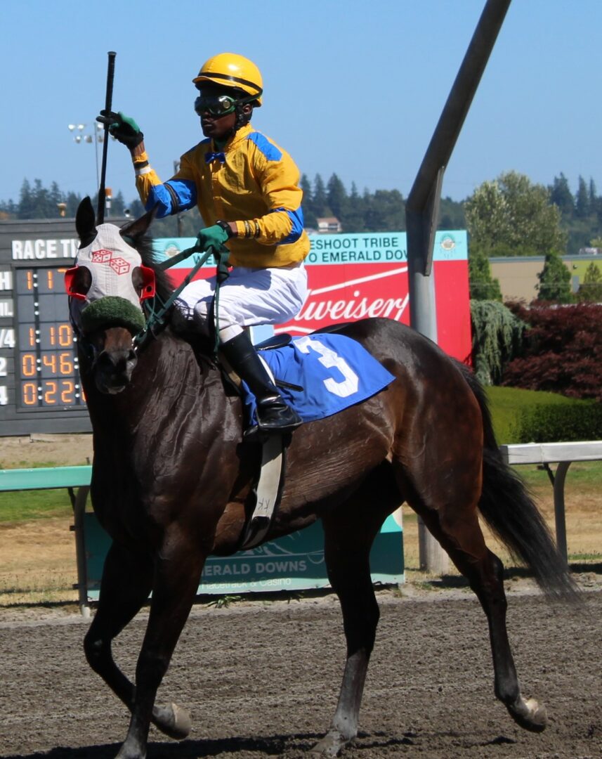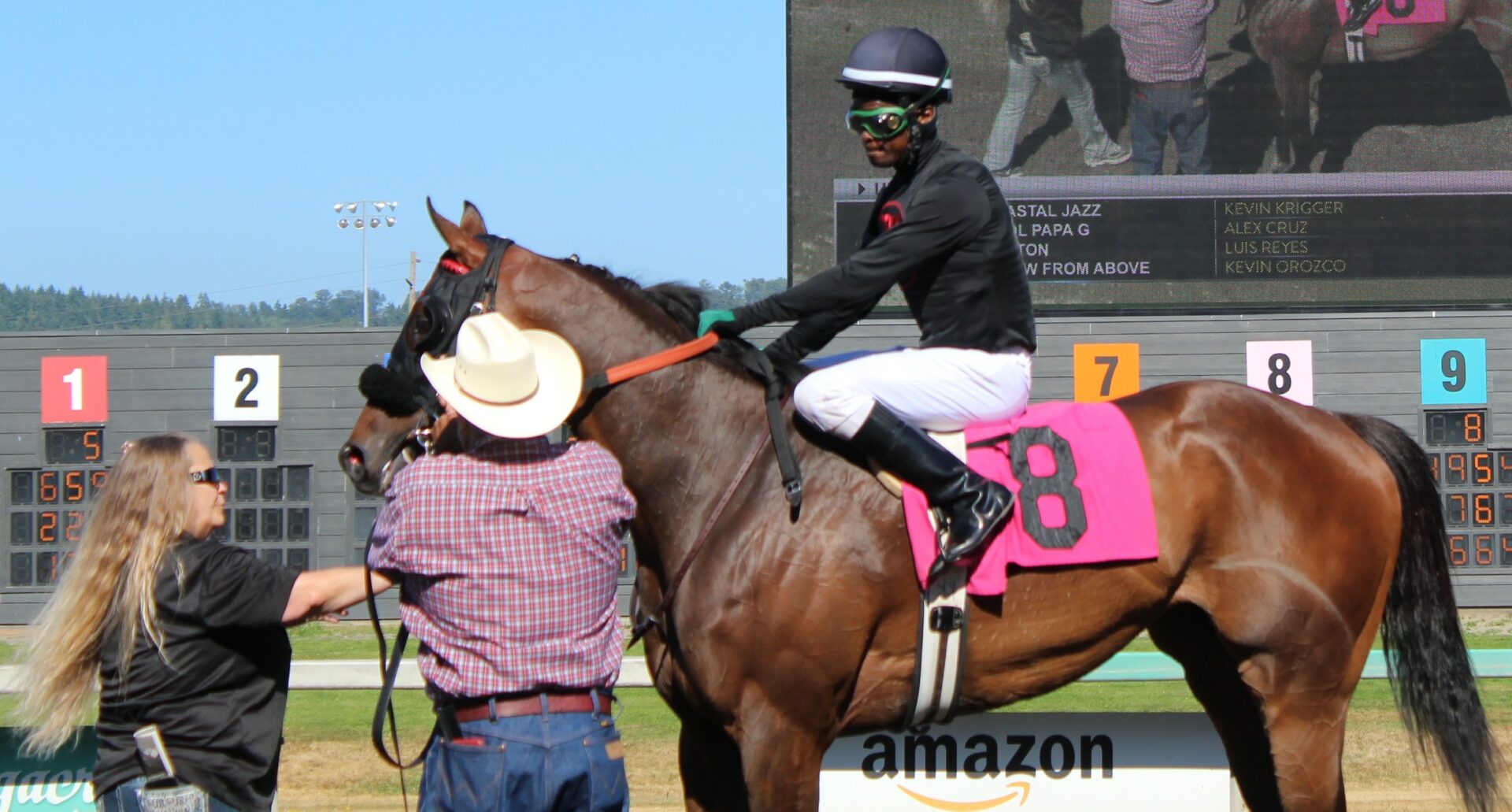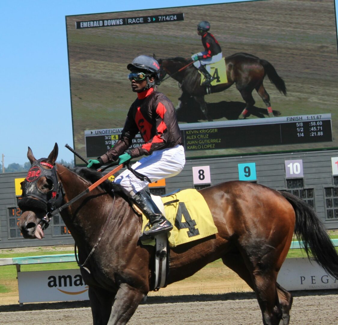 Krigger was the 2nd rider to triple this week with Luis Reyes getting his 1st triple on Saturday for his biggest number of wins at Emerald Downs but his biggest win remains his stakes win on Neiman in the Budweiser Stakes. We had a chance to catch up with Luis on Sunday to talk with him about his big day.