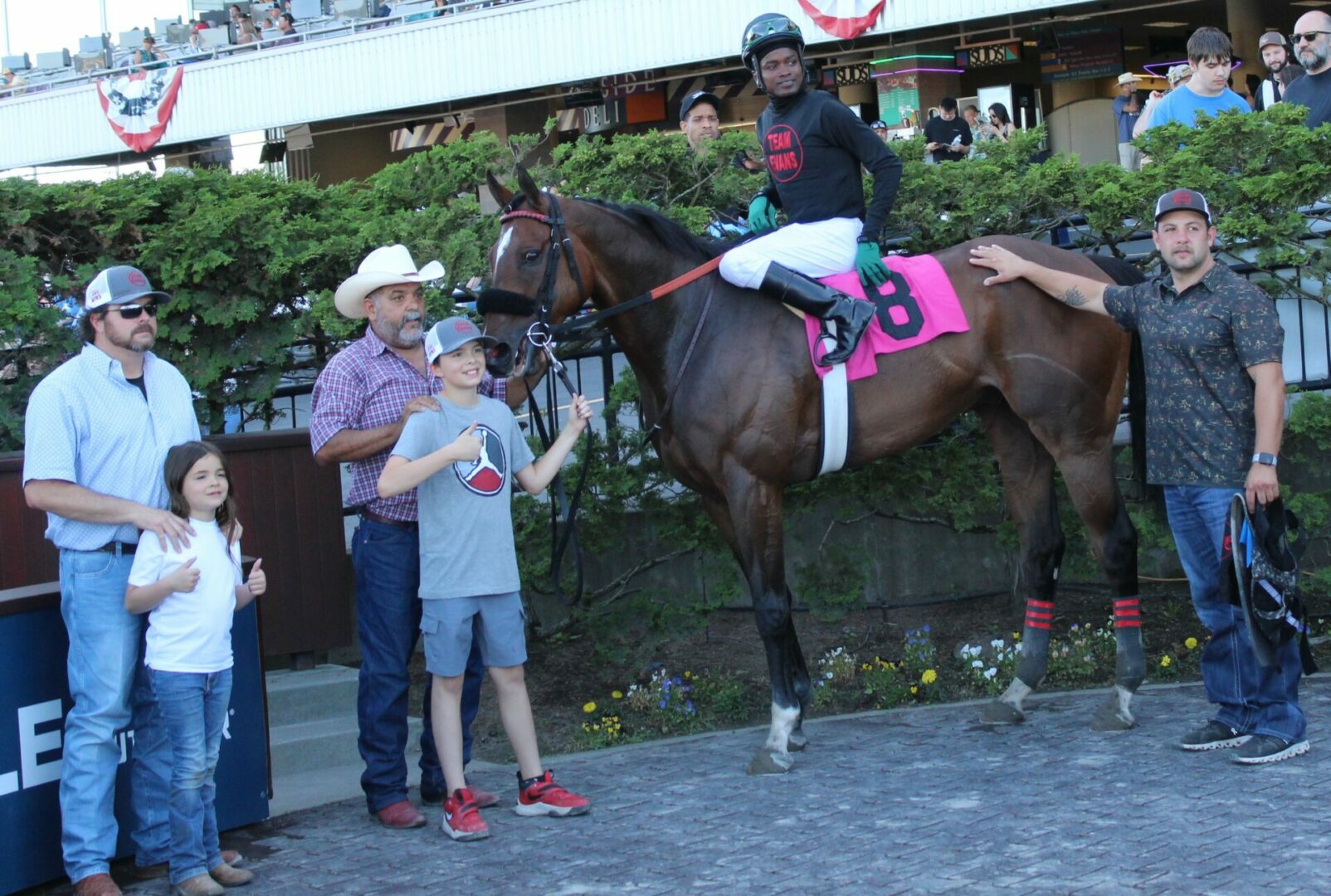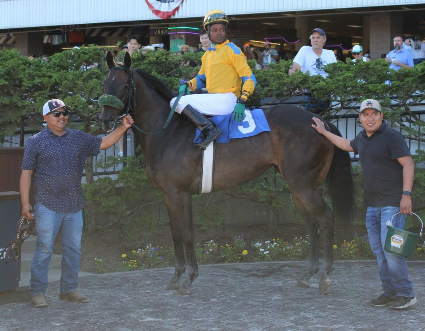 7 runners went 6 1/2 furlongs and 7-5 favorite Princess Hekawi rolled to a huge win by 7 lengths stopping the clock in 1:17.23. 6-1 Big Jolt with Karlo Lopez ran hard and engaged the Princess early but didn’t have a response in the stretch but was a clear 2nd. 42-1 Forest Acclamation with Kiaman McGregor ran a big 3rd while Aliceshouseofheart took 4th.
