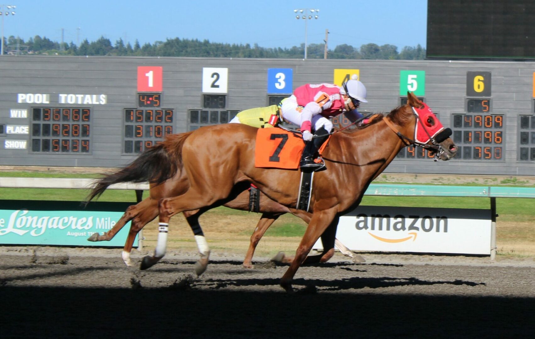 (Auburn, WA) It was Corgi day at Emerald Dowms and the dogs, owners and fans showed up with another huge crowd on hand. The $50,000 Kent Stakes was also contested with a field of 11 going 6 1/2 furlongs. The track was fast and 56 starters for an average of 7 starters per race. Nearly 10,000 people were on hand to cheer on both the horses and Corgi’s. They were also in a betting mood wagering the 2nd highest handle of the season of $1,555,586 just shy of the $1,565,104 on June 16. This was an average of $194,448 per race and led to some season high pay-outs.