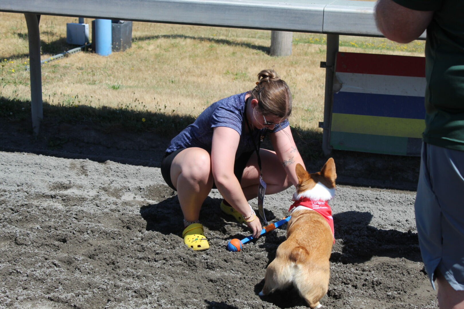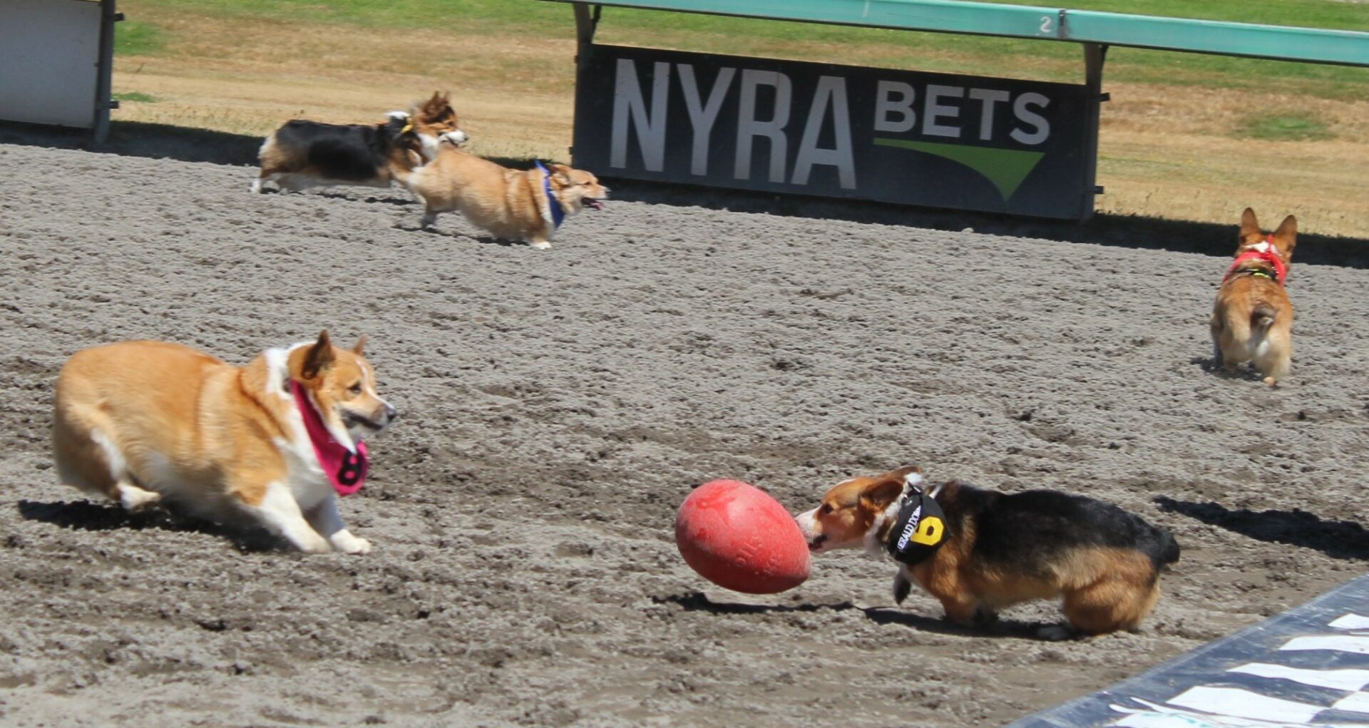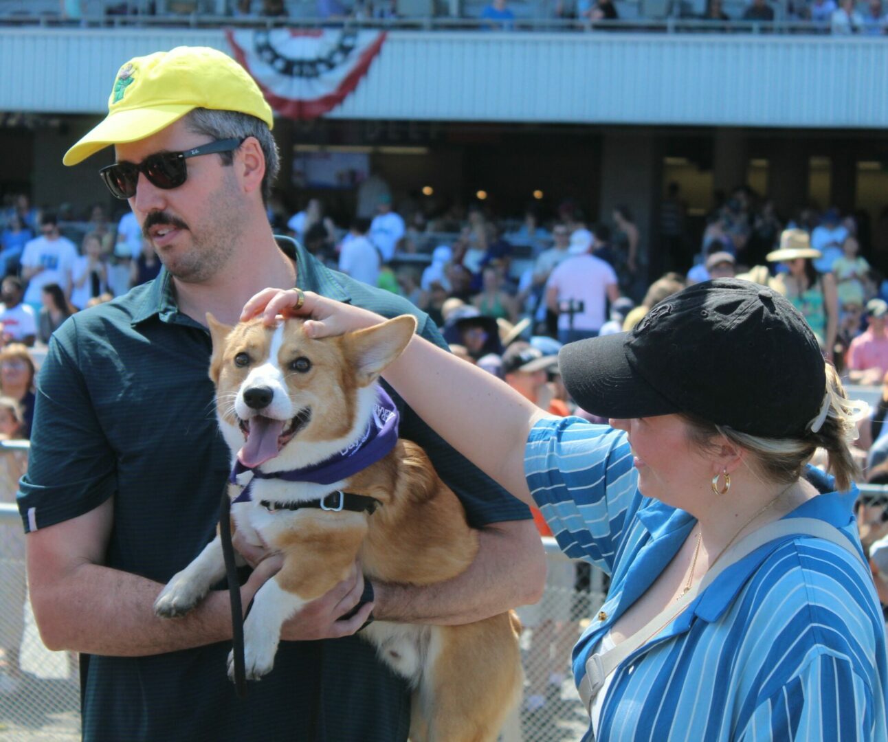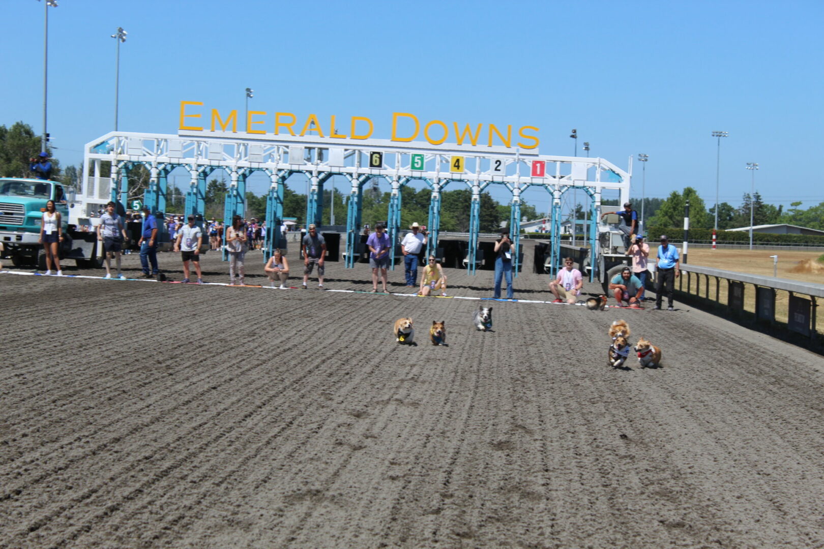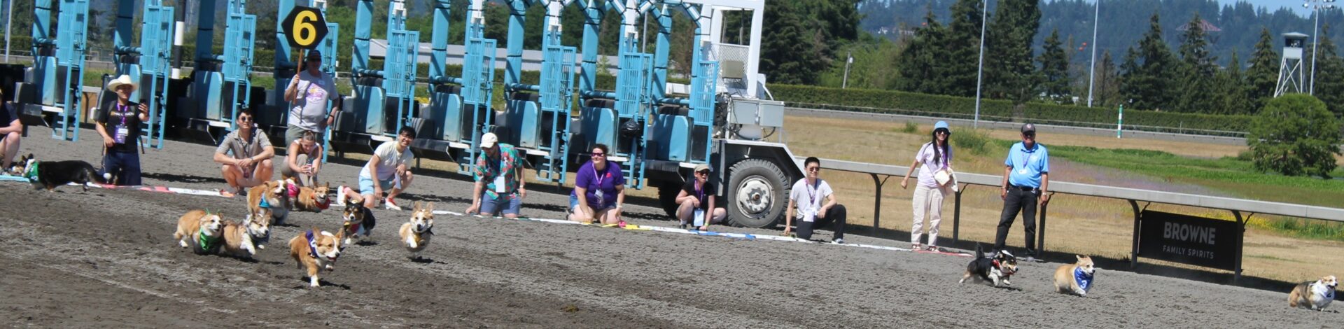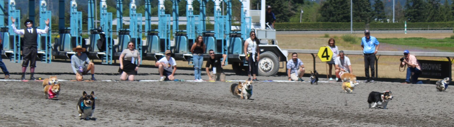It was Corgi Championship day with more than 100 Corgi’s set to make their run on Sunday. Fields of 12 lined up for 5 qualifying heats after the 2nd thoroughbred race and then 4 more qualifying heats for a total of 9 were run after the 3rd race. The winners earned their way to the Championship heat with last year’s champion for a field of 10 and was run after the 5th race.