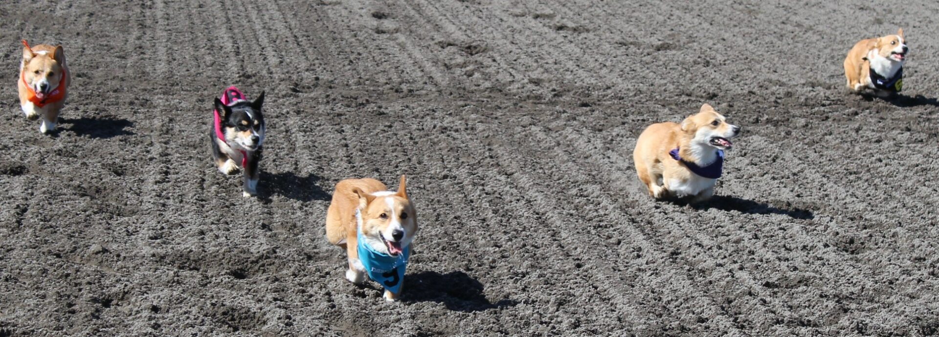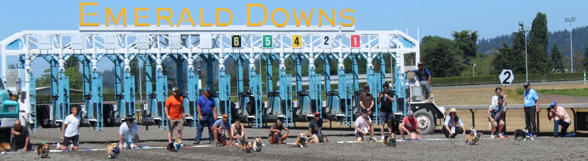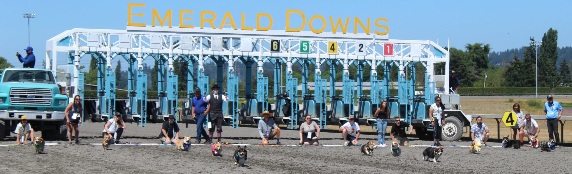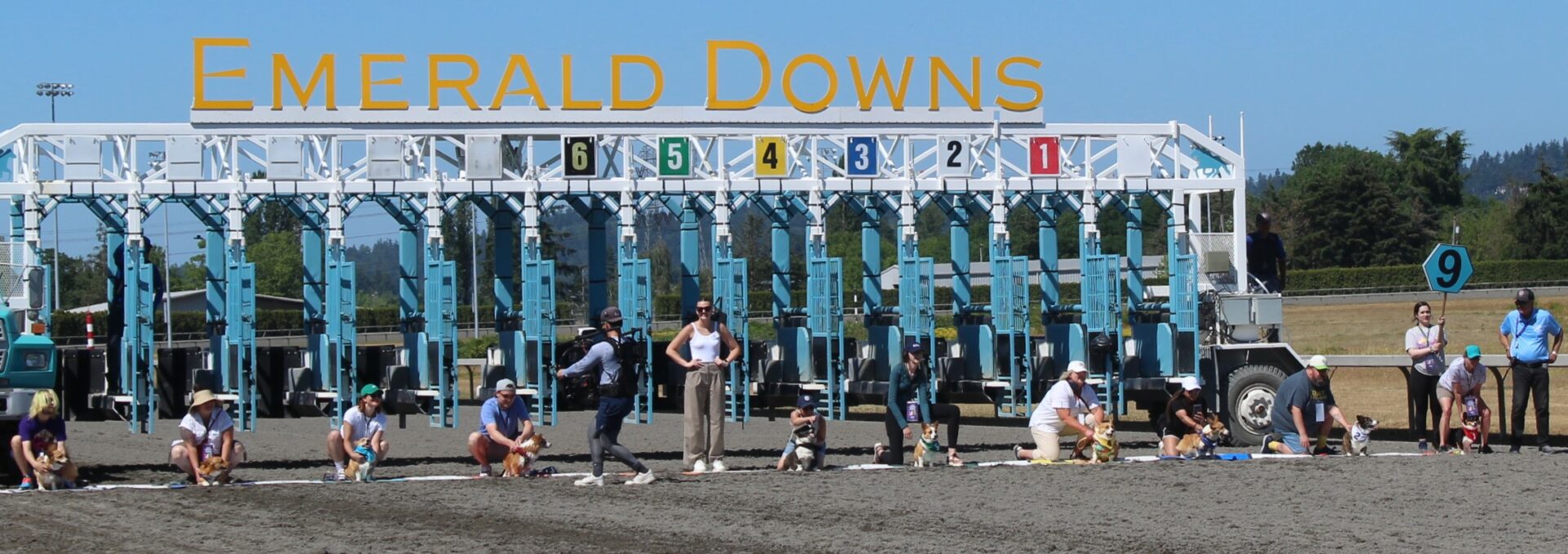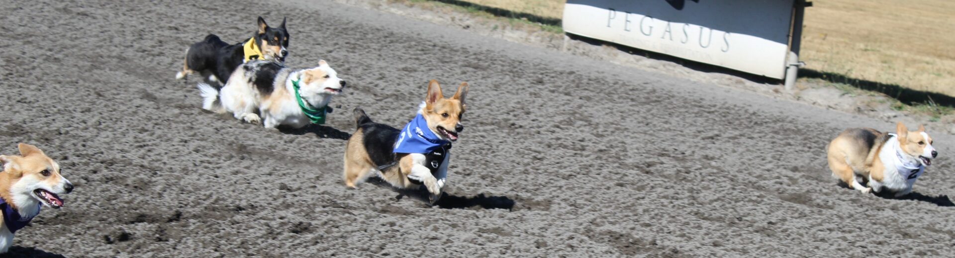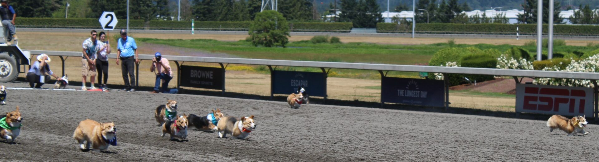 It was Corgi Championship day with more than 100 Corgi’s set to make their run on Sunday. Fields of 12 lined up for 5 qualifying heats after the 2nd thoroughbred race and then 4 more qualifying heats for a total of 9 were run after the 3rd race. The winners earned their way to the Championship heat with last year’s champion for a field of 10 and was run after the 5th race.