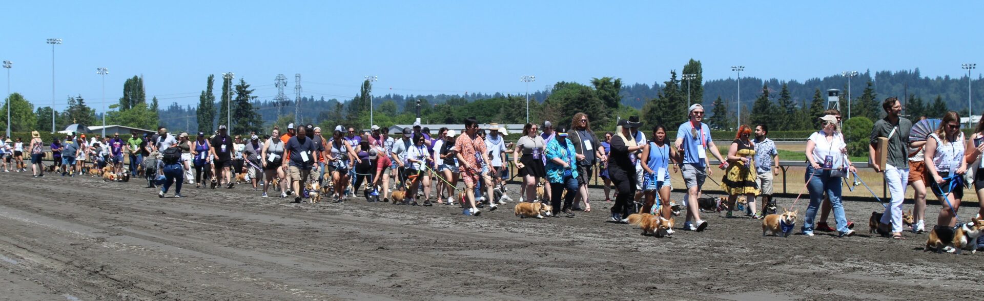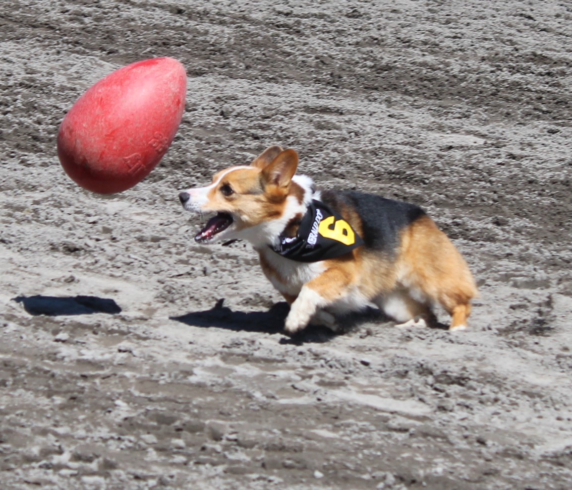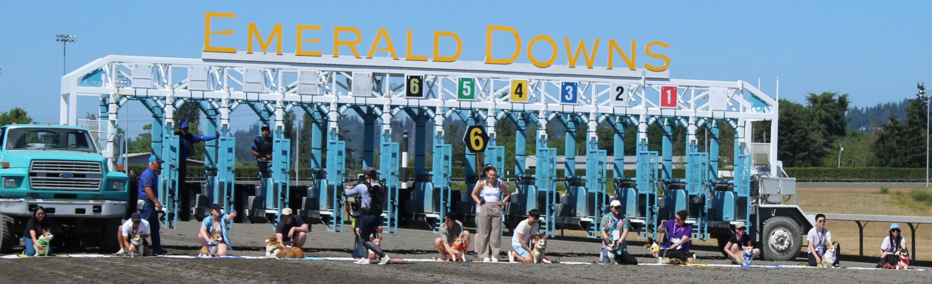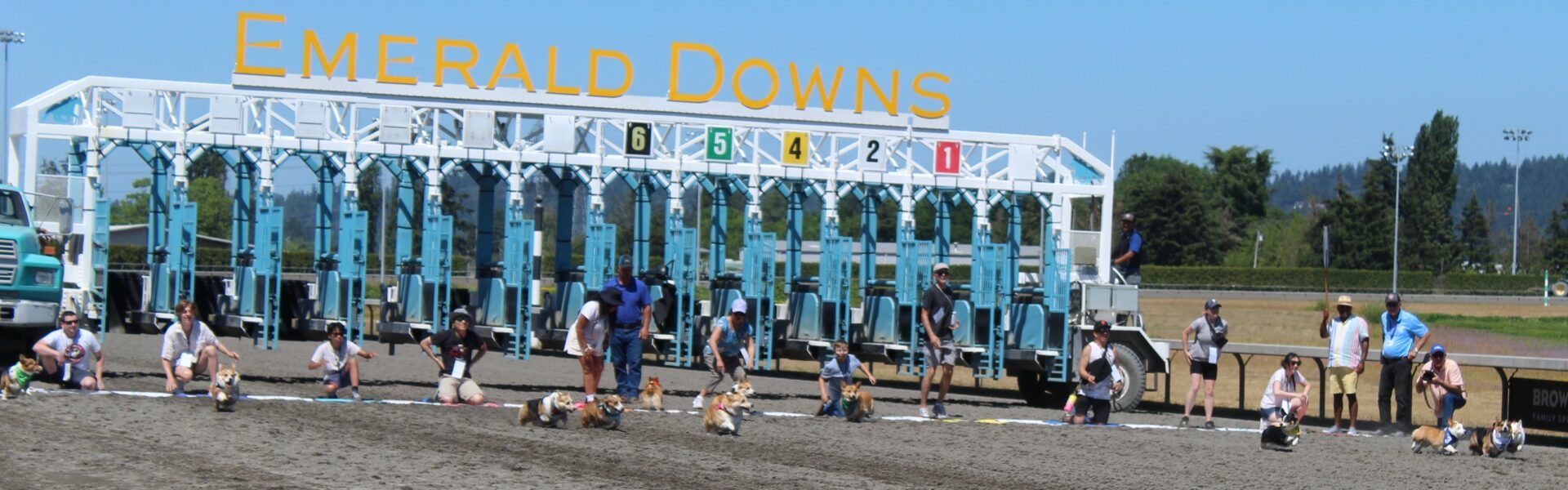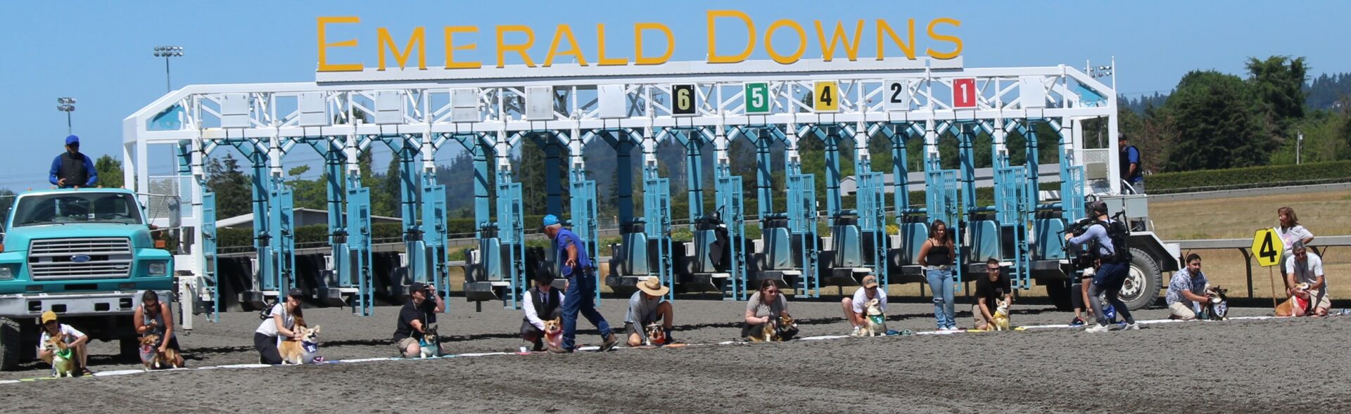 It was Corgi Championship day with more than 100 Corgi’s set to make their run on Sunday. Fields of 12 lined up for 5 qualifying heats after the 2nd thoroughbred race and then 4 more qualifying heats for a total of 9 were run after the 3rd race. The winners earned their way to the Championship heat with last year’s champion for a field of 10 and was run after the 5th race.