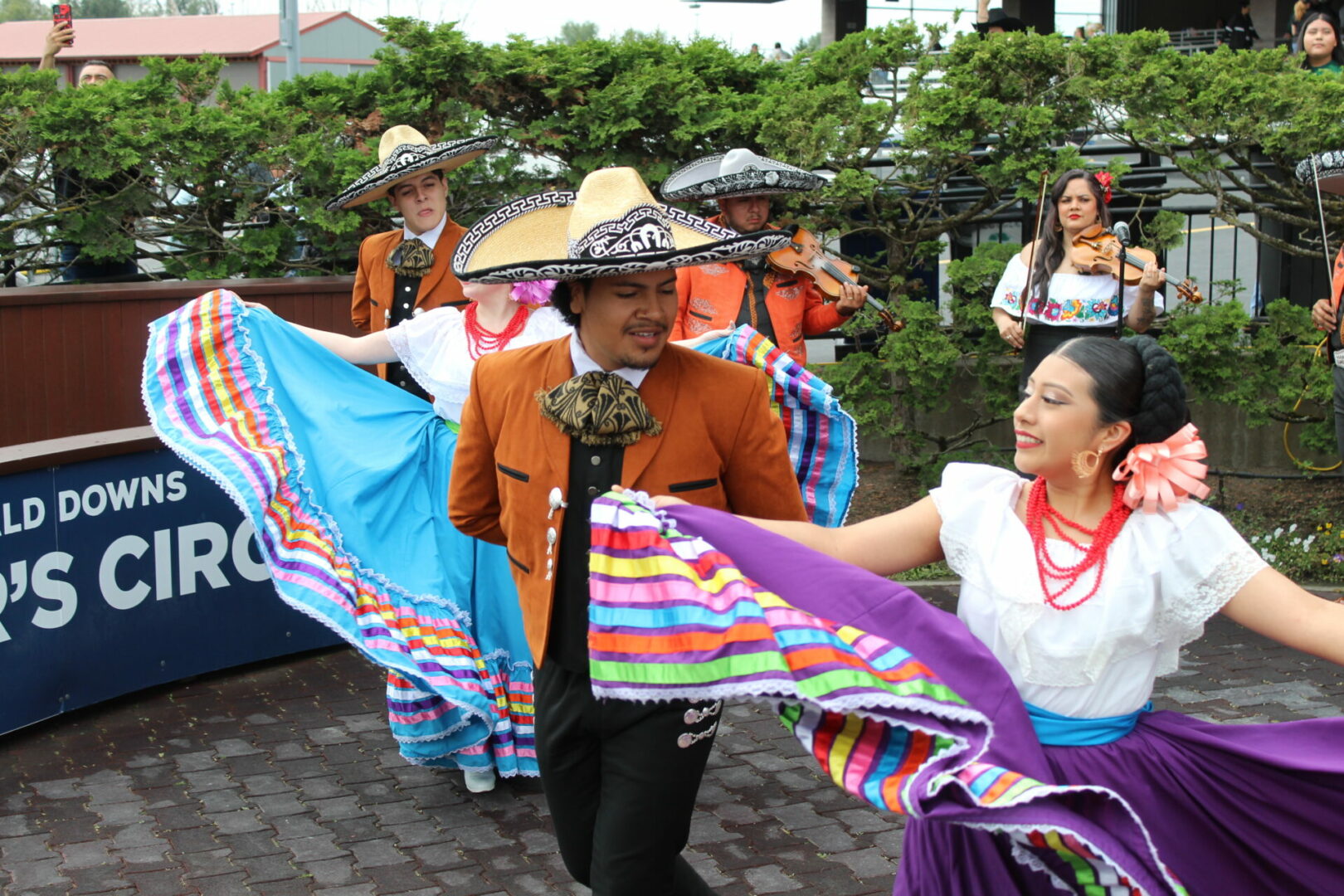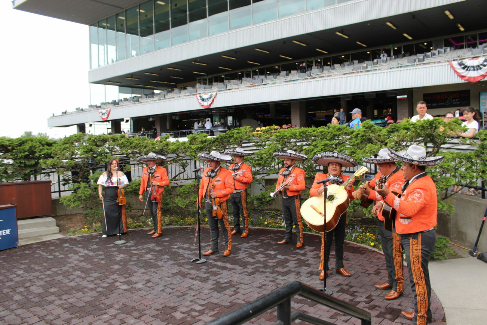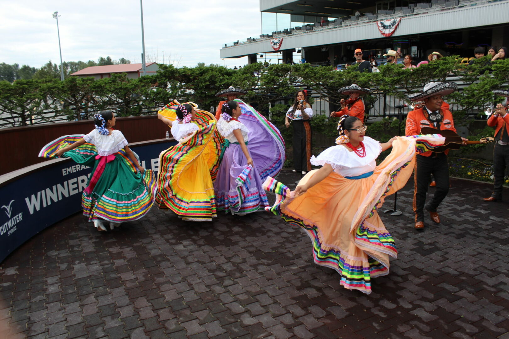 The Premio Esmeralda celebration focuses on the large hispanic workforce in racing from riders to grooms to trainers and owners. The day featured colorful dance and the famous dancing horses. Check out our pictures and video at the bottom of the story plus our racing photo gallery.