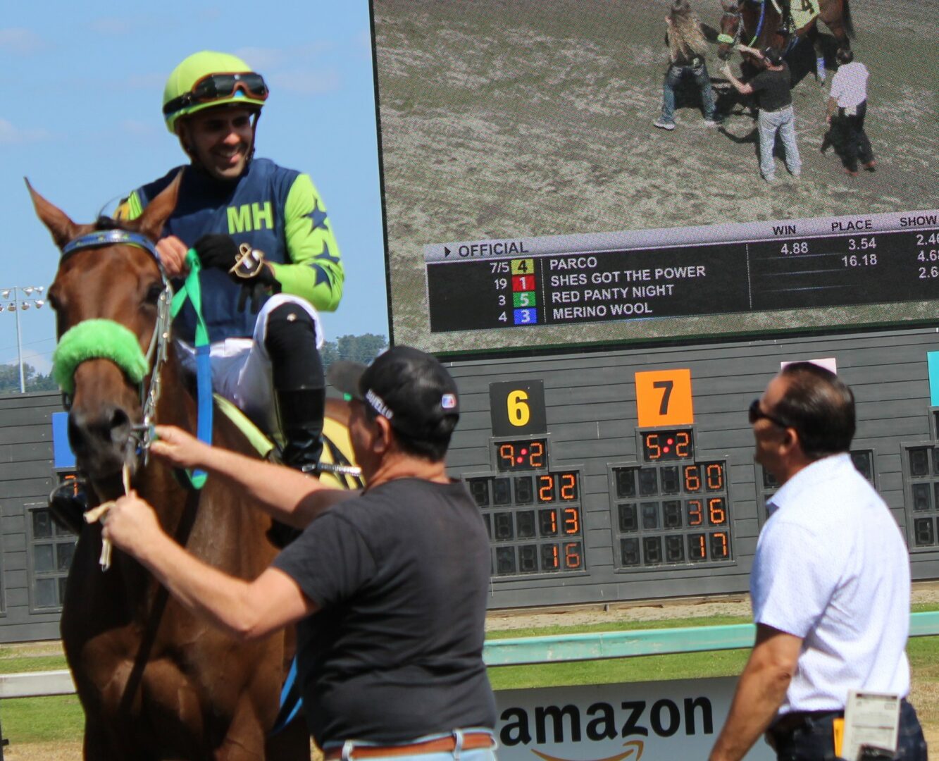 Parco runs for Miguel H Racing and trained by Miguel Hernandez and paid $4.88, $3.54 and $2.46. She’s Got the Power returned a big $16.18 to place and $4.68 to place. The $1 exacta paid $31.53, the $1 trifecta paid $133.40 and the $1 superfecta returned $805.90.