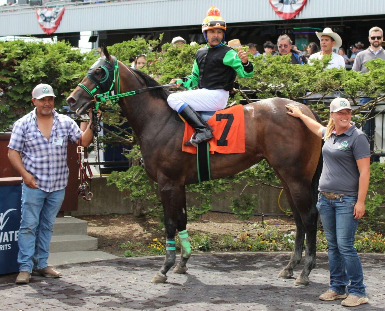 Alex Cruz had a rough day and was hoping to finish strong and he did aboard the 1-1 favorite in the 1 mile finale. Cruz took Harbor Lass to the front and controlled the pace going 1:13.52 for the 3/4’s and extended their lead down the stretch to a 3 length win. Harbor Lass races is owned and trained by Sergio Perez.