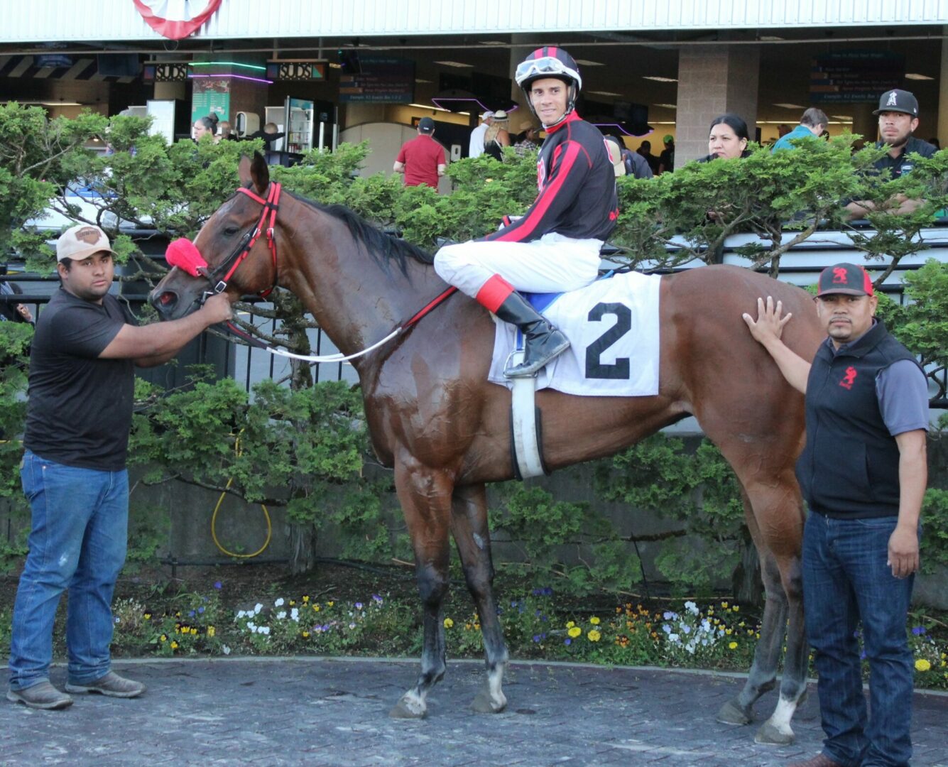 In Saturday’s finale Luis Reyes got his 2nd win of the day on the longest shot of the weekend with 11-1 Wednesday at Shady with a front running win from 5 1/2 furlongs. No one challwnged Shady who set fractions of 21.75 and slowed it down to a key 45.10 half which allowed Shady and Reyes to fend off 2-1 Fed Grant and Juan Gutierrez by 3/4’s a length at the wire in a final clocking of 1:04.14. Wednesday at Shady is owned by Alex and Vincent Ortega and trained by Scott Tubbs and paid $24.56, $10.68 and $4.12.