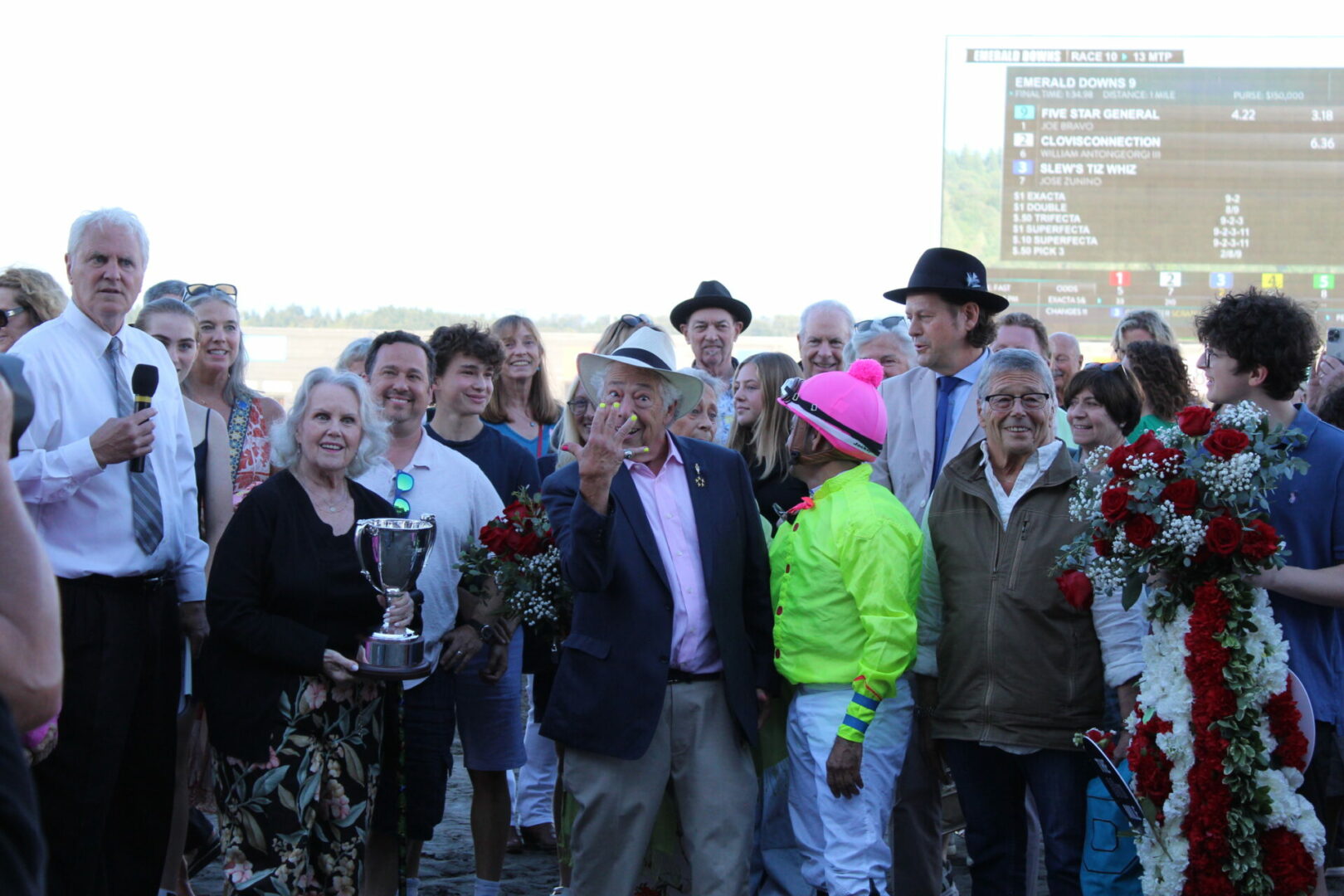 However, one of the inductees Junior Coffey passed away last year and his widow and 24+ year Emerald Downs employee Kathy Coffey was the honorary steward for the 89th Longacres Mile.