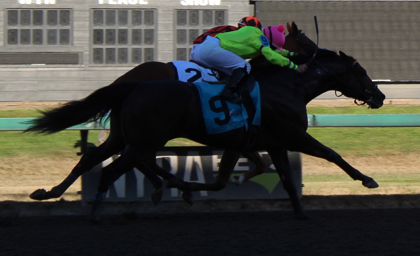 A field of 6 went 6 1/2 furlongs and closer Napoletano got up to win with Allyssa Morales kicking off Championship Sunday with a nice return at 6-1. Napoletano caught front speed Corn Pop and Juan Gutierrez at 5-2 while 6-5 top choice Overly Fast with Kevin Krigger did show and 9-2 Winter Falcon with Luis Negron coming back to ride in the Stakes races took 4th. Napoletano races for owner/trainer Miguel Hernandez and ran the 6 1/2 furlongs in a quick 1:15.84.