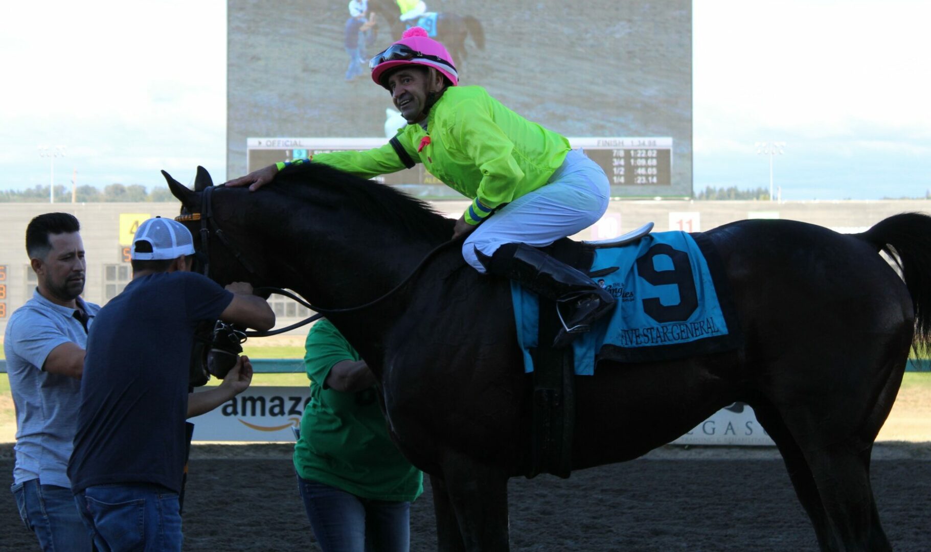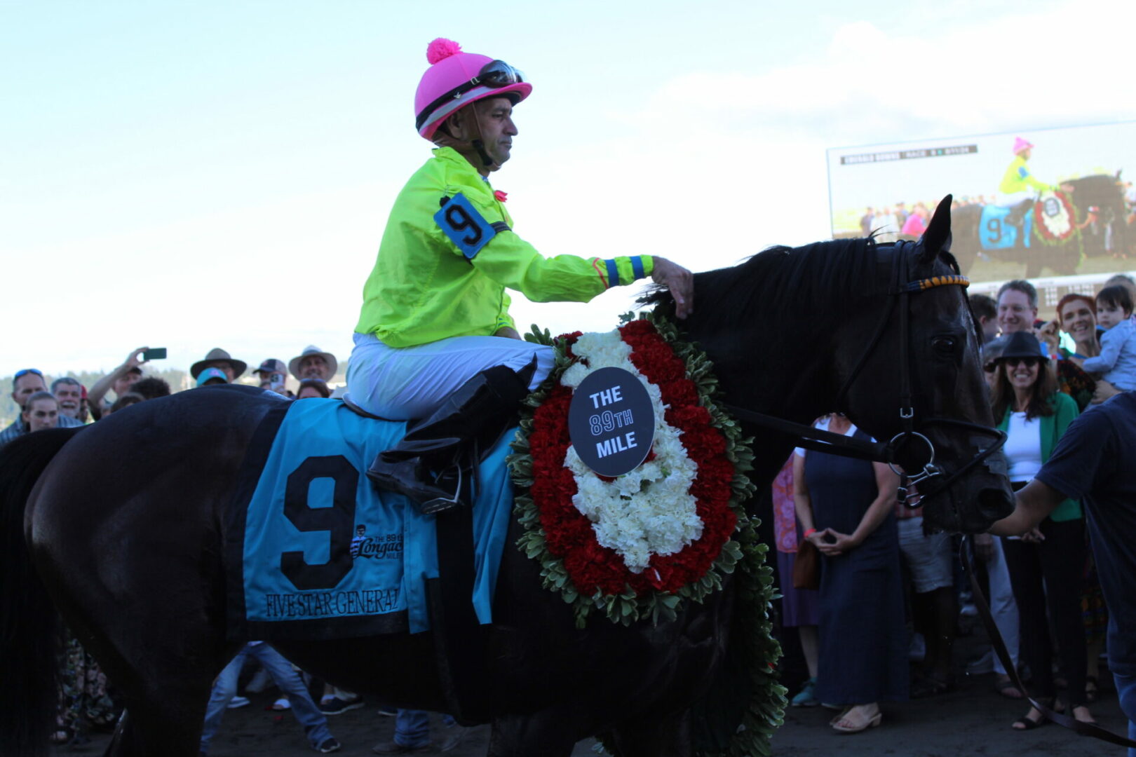 4 big stakes races on the card one after another from the 6th through the 9th race and of course culminates with the Longacres Mile. This was the 89th version of the race that began in 1935. Five Star General was seeking to become only the 4th horse ever to win back-to-back Miles and the 5th to ever win 2 Longacres Miles. The 8 year-old 5-2 morning line favorite Five Star General is the only horse in Longacres Mile history to place in the top 3 4 times and aimed to extend that streak on Sunday.