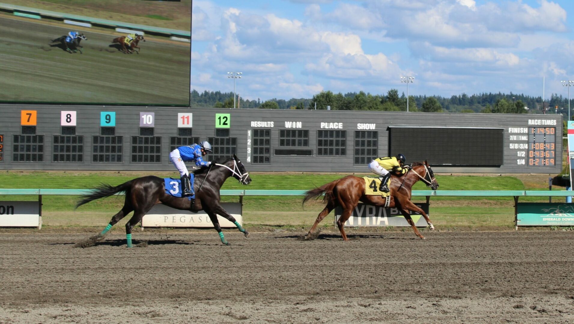 (Auburn, WA) Two stakes races were run on Sunday with the Washington Cup Juvenile fillies and colts and geldings. Both races were Chamber of Commerce type of races meaning if you wanted to advertise the excitement of racing both of these races would have been the example.